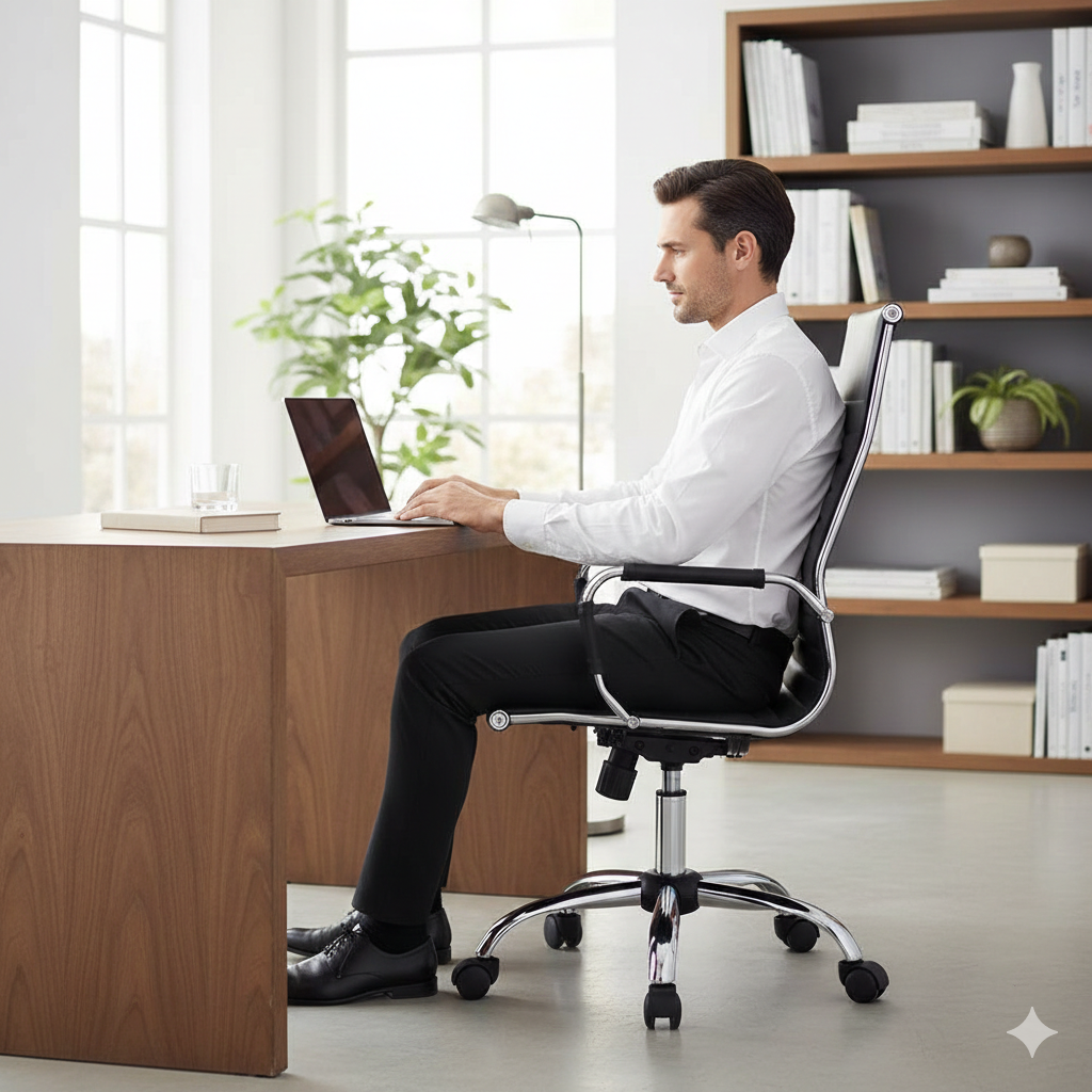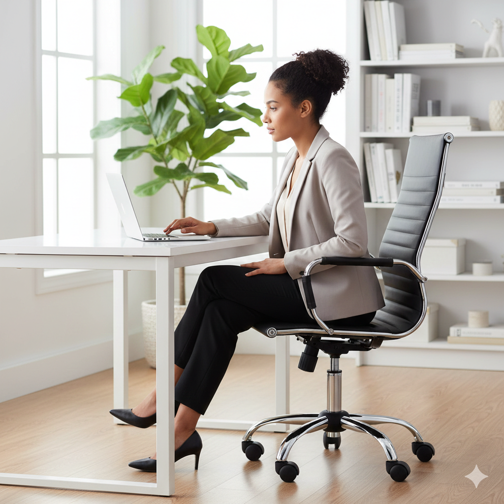 Chaise de bureau présidentielle en similicuir noir Tosini Dallas.
