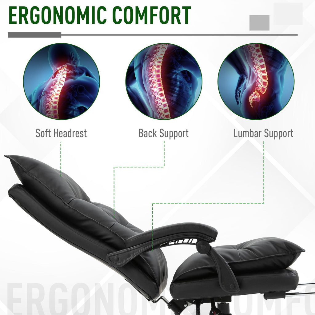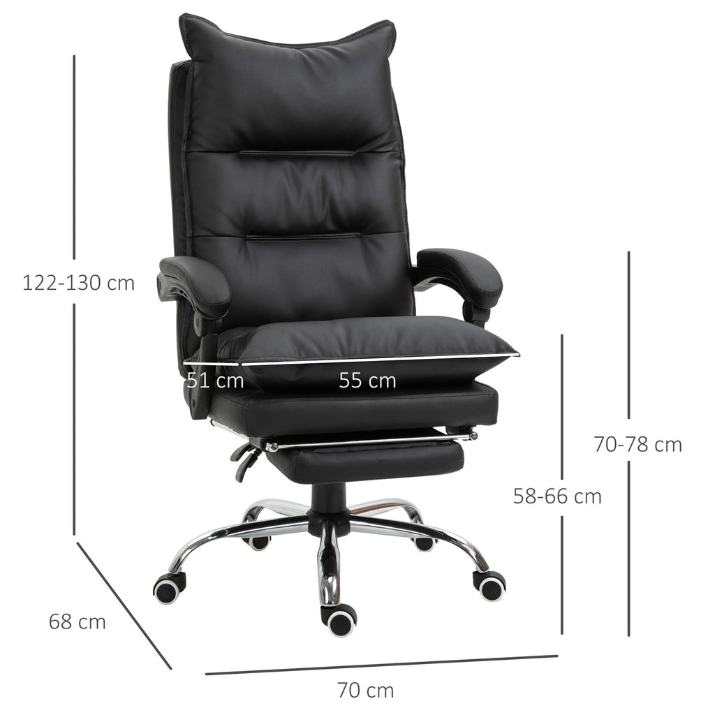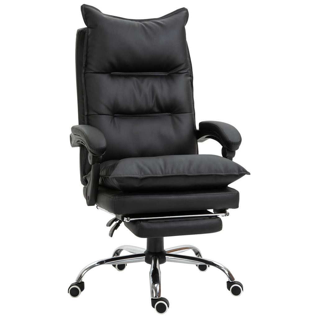 Chaise de bureau présidentielle relaxante en simili cuir avec repose-pieds noir