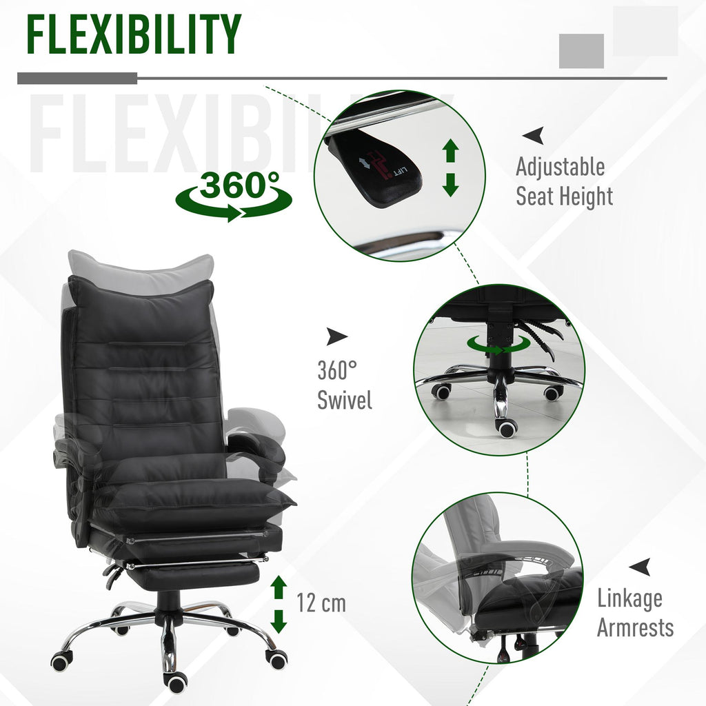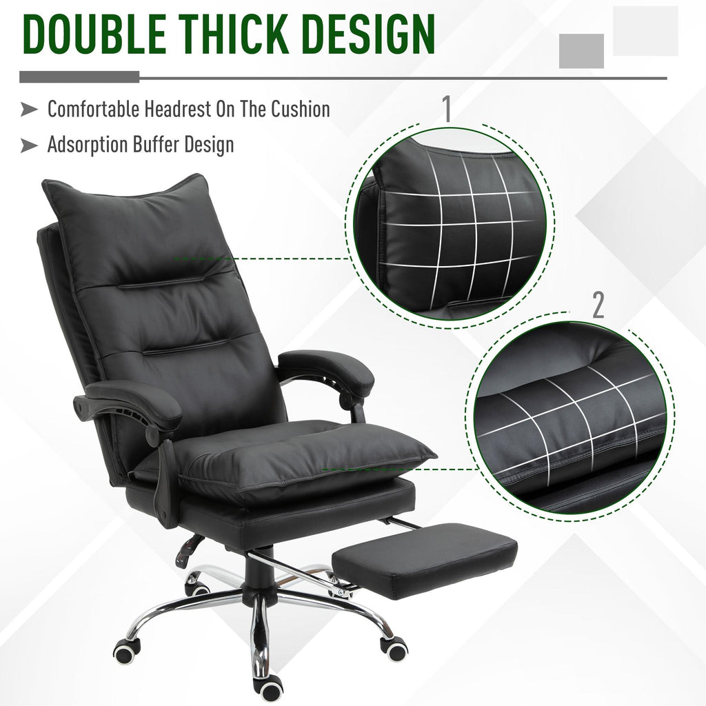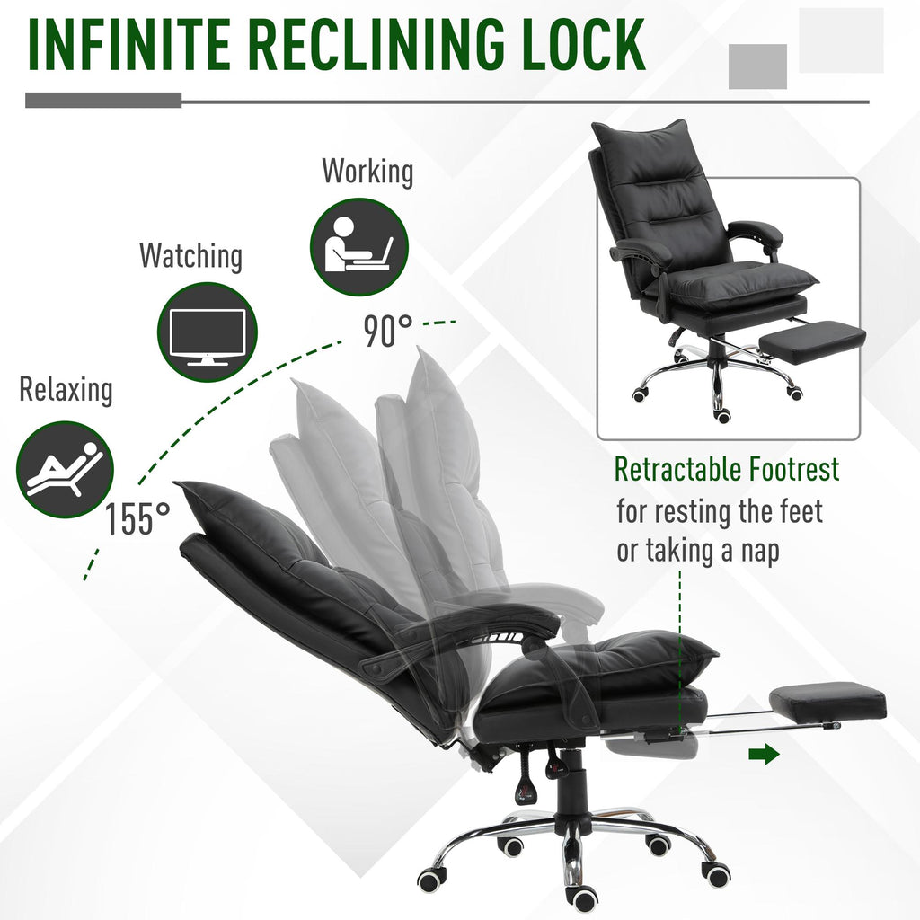 Chaise de bureau présidentielle relaxante en simili cuir avec repose-pieds noir