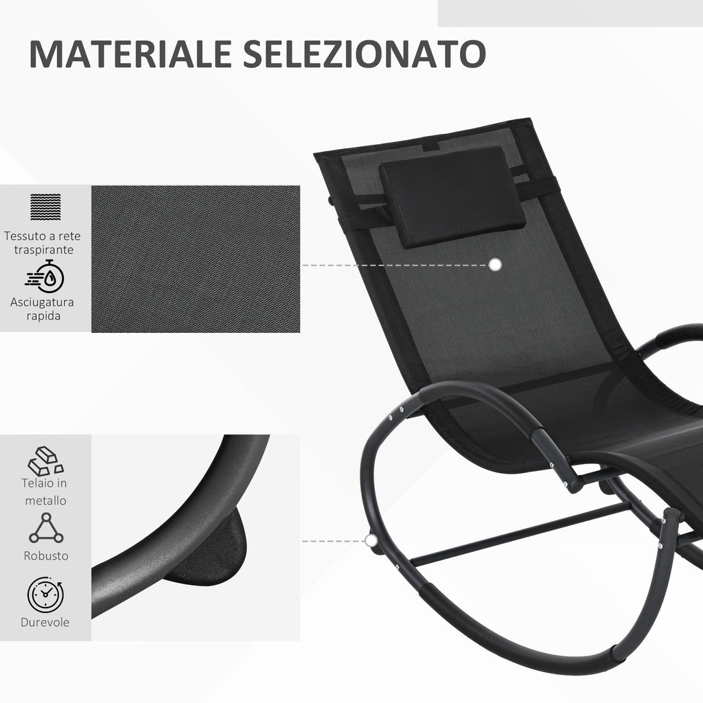 Sedia Sdraio a Dondolo Zero-Gravity da Esterno Impermeabile 155x61x88 cm con Poggiatesta Nero