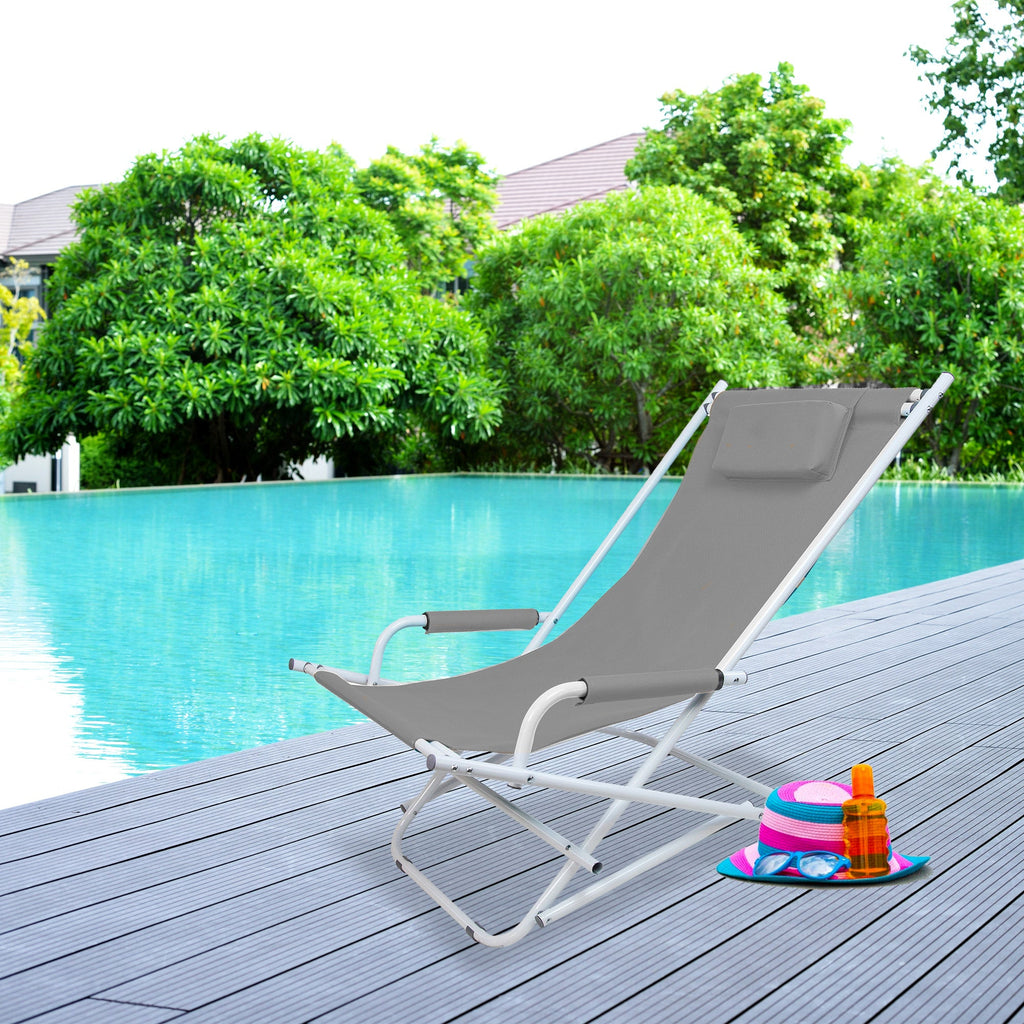Chaise longue pliante 98x61x72 cm en acier et tissu Oxford 600D gris
