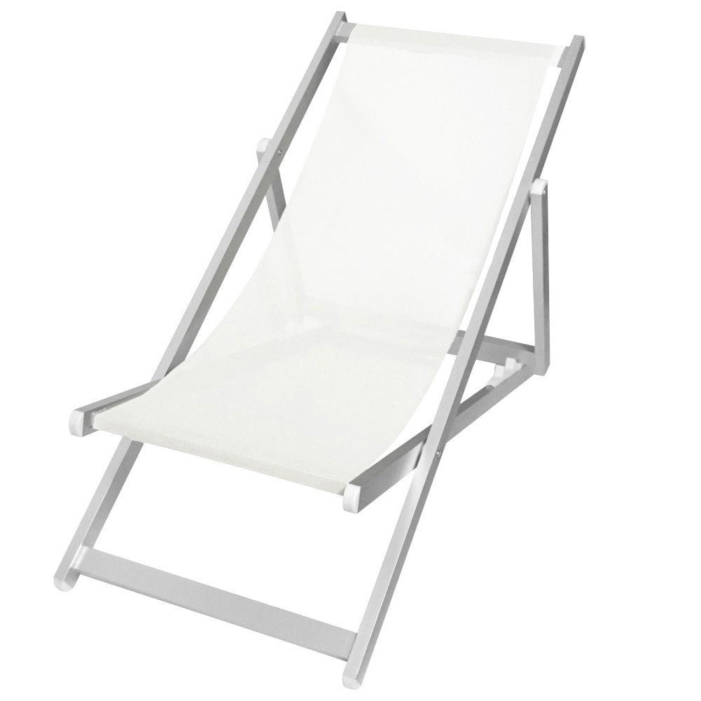 Chaise Longue Pliante 3 Positions en Aluminium et Textilène Blanc