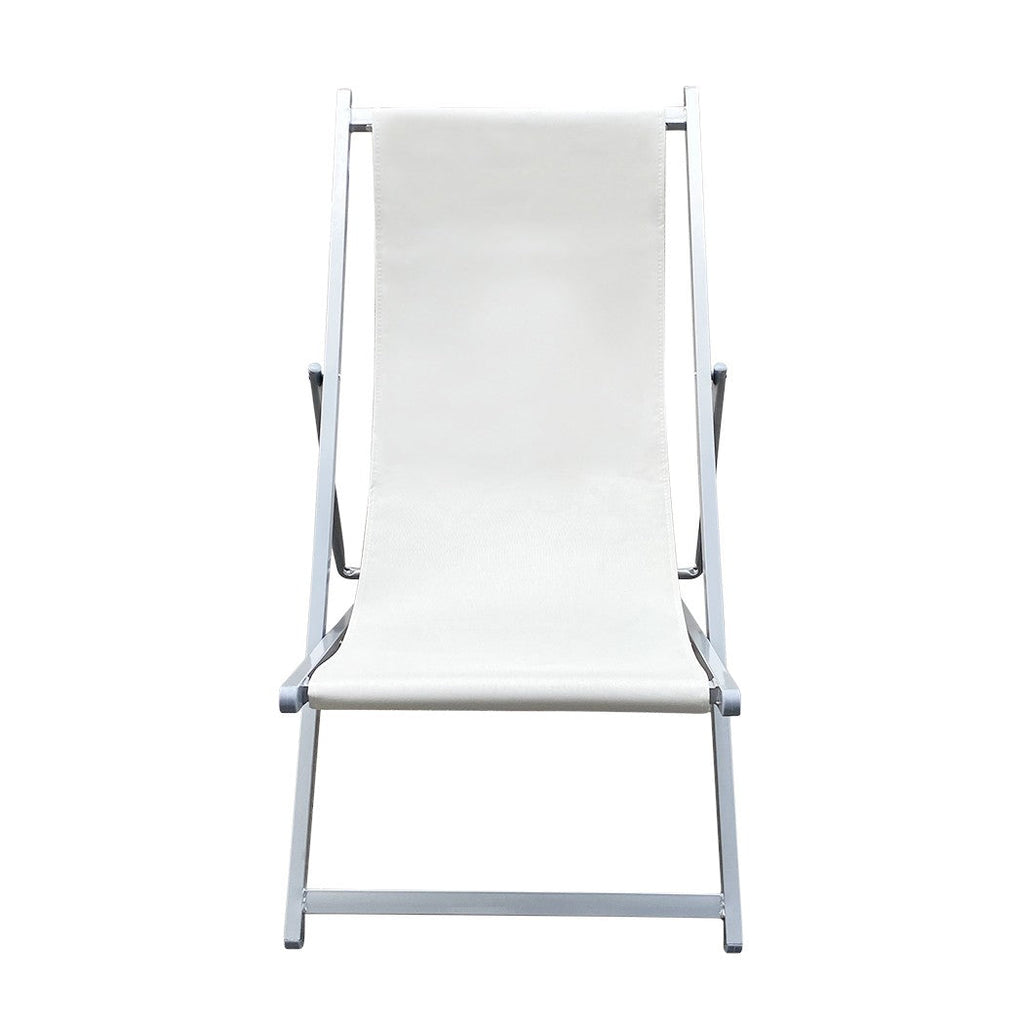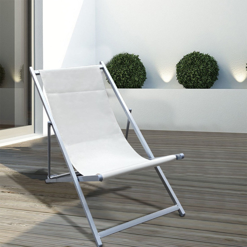 Chaise Longue Pliante 3 Positions en Fer et Tissu Oxford Beige Matera