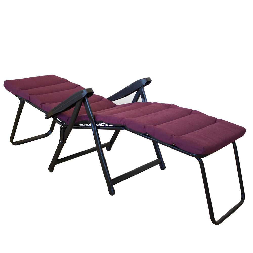Chaise longue de jardin pliante inclinable 6 positions avec coussin bordeaux