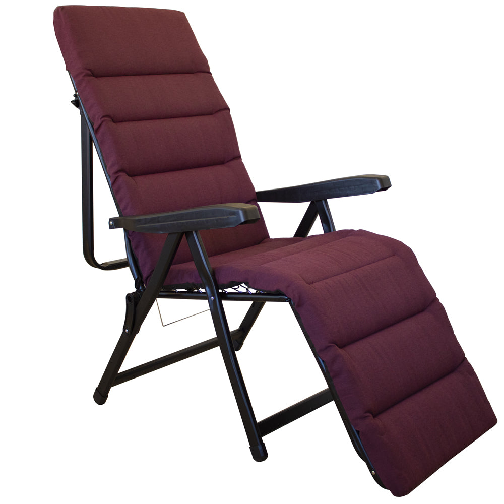 Transat de jardin inclinable pliant 6 positions avec coussin Bordeaux
