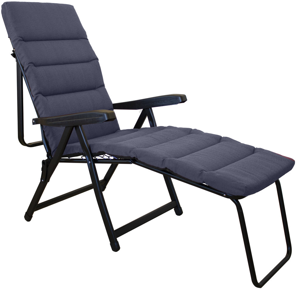 Chaise longue de jardin pliante inclinable 6 positions avec coussin gris
