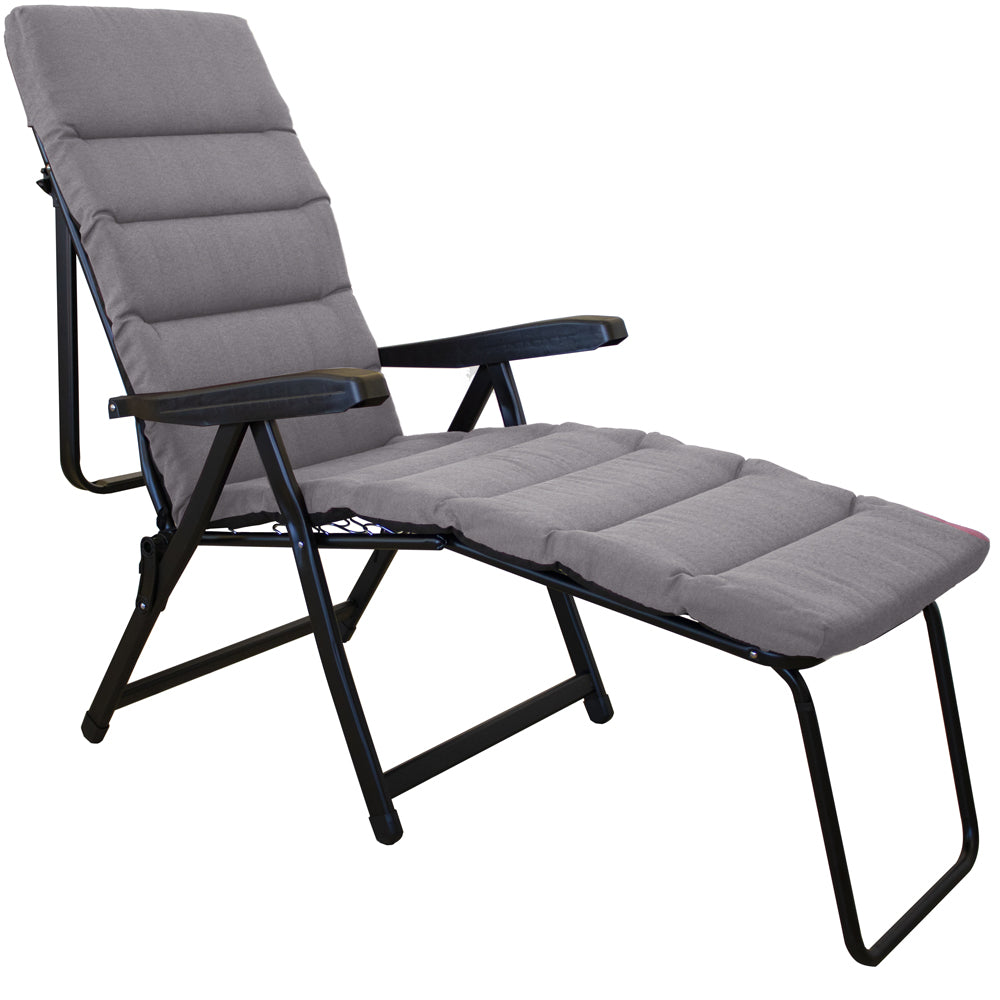 Transat de jardin pliant inclinable 6 positions avec coussin gris tourterelle