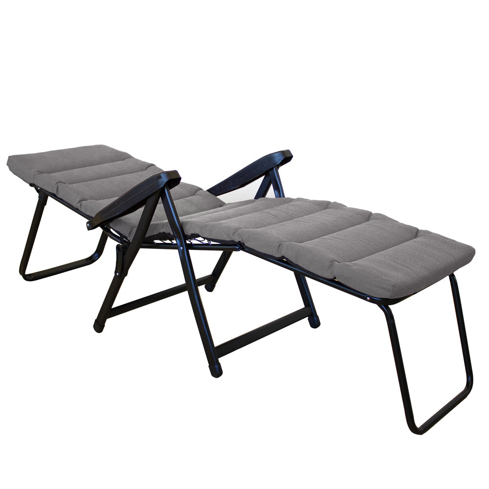 Chaise longue de jardin pliante inclinable 6 positions avec coussin gris tourterelle