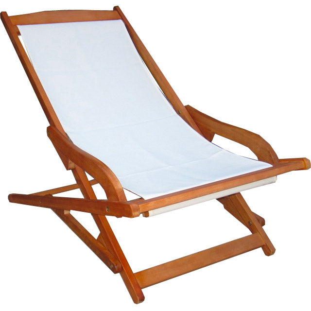 Chaise longue pliante en bois et tissu Bauer Emy Ecru