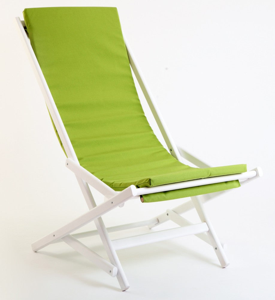 Chaise longue pliante en bois laqué blanc et tissu vert acide
