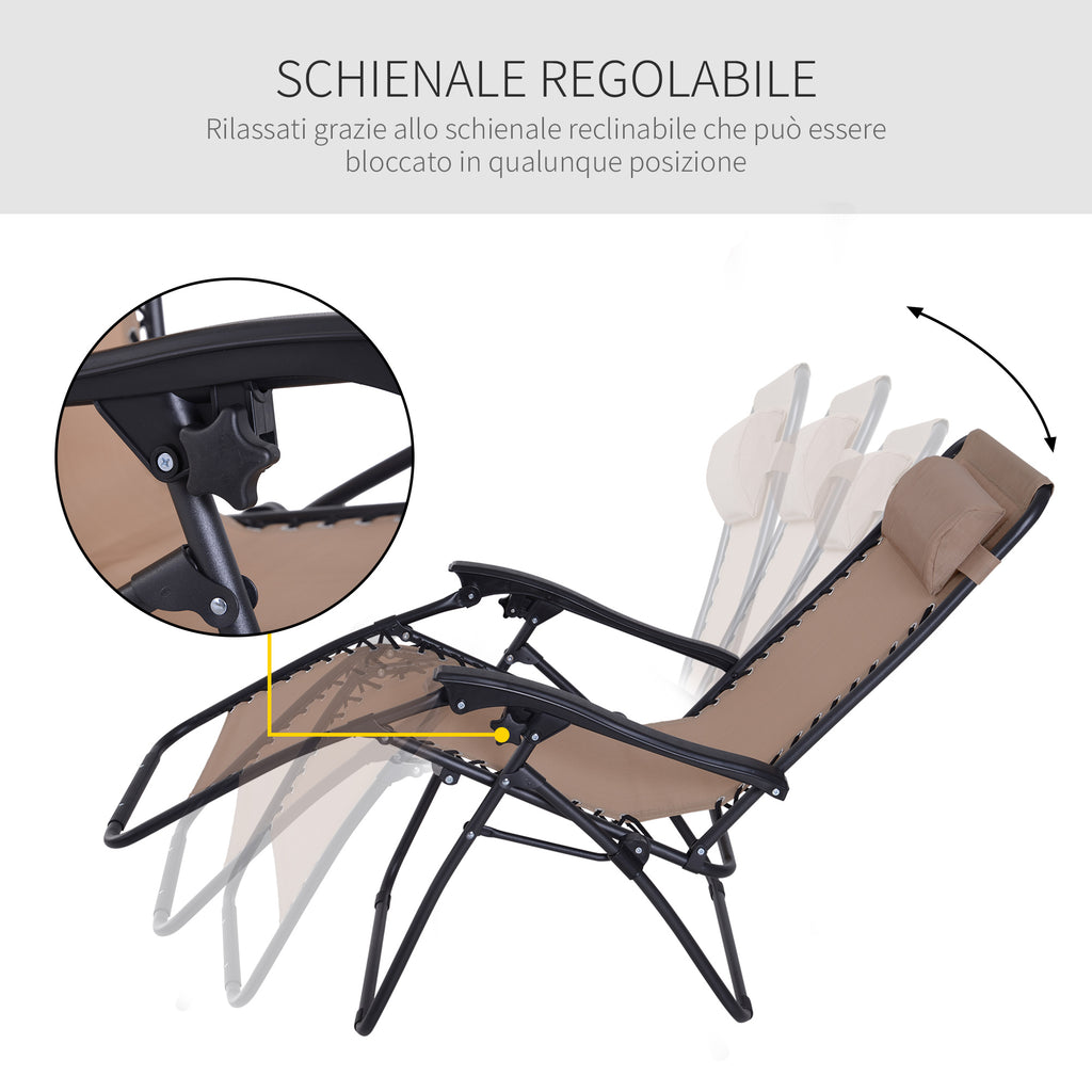 Chaise Longue Zero Gravity 90x65x110cm Inclinable en Acier et Textilène