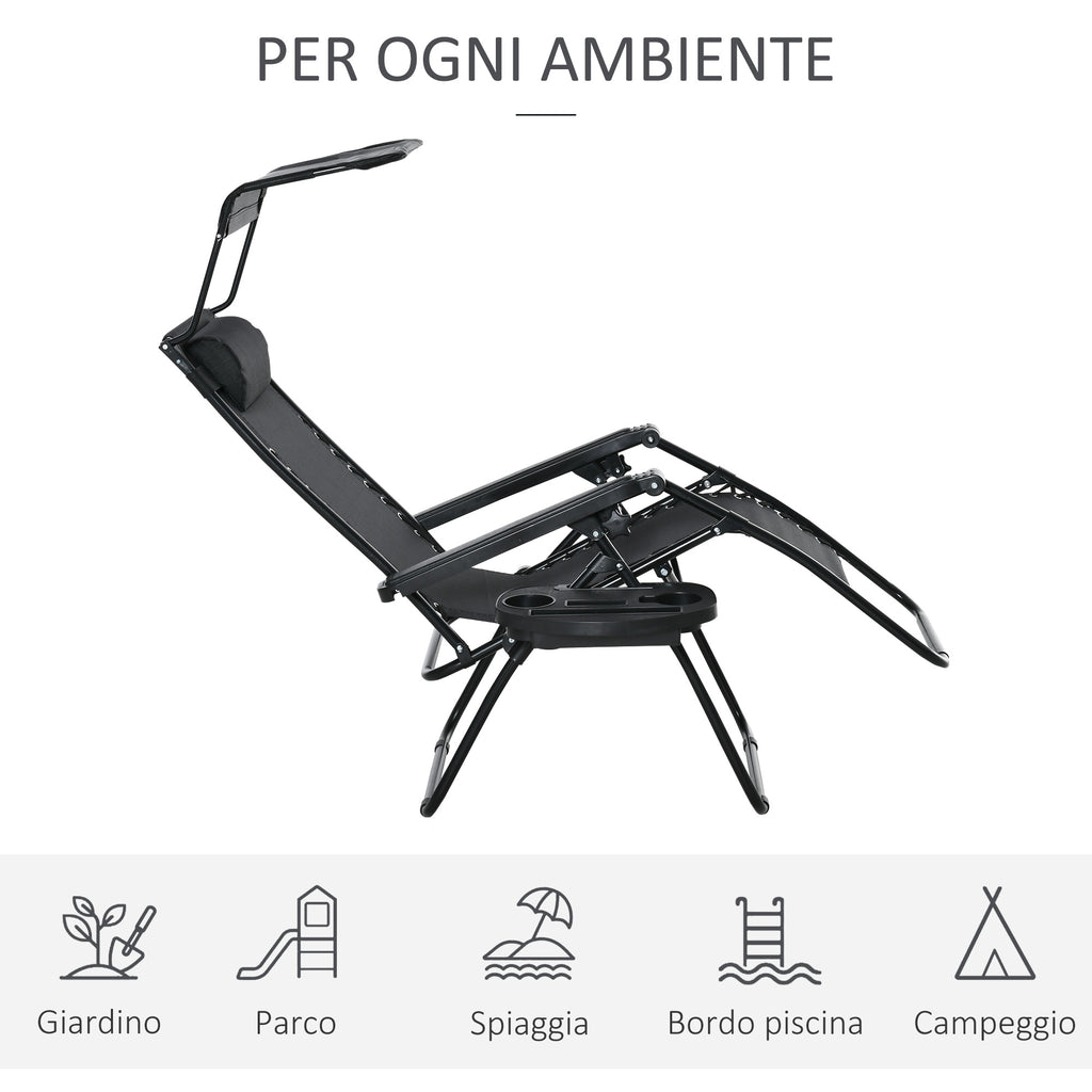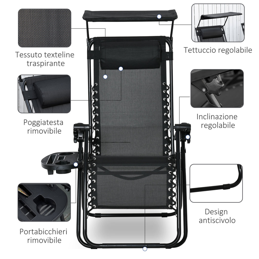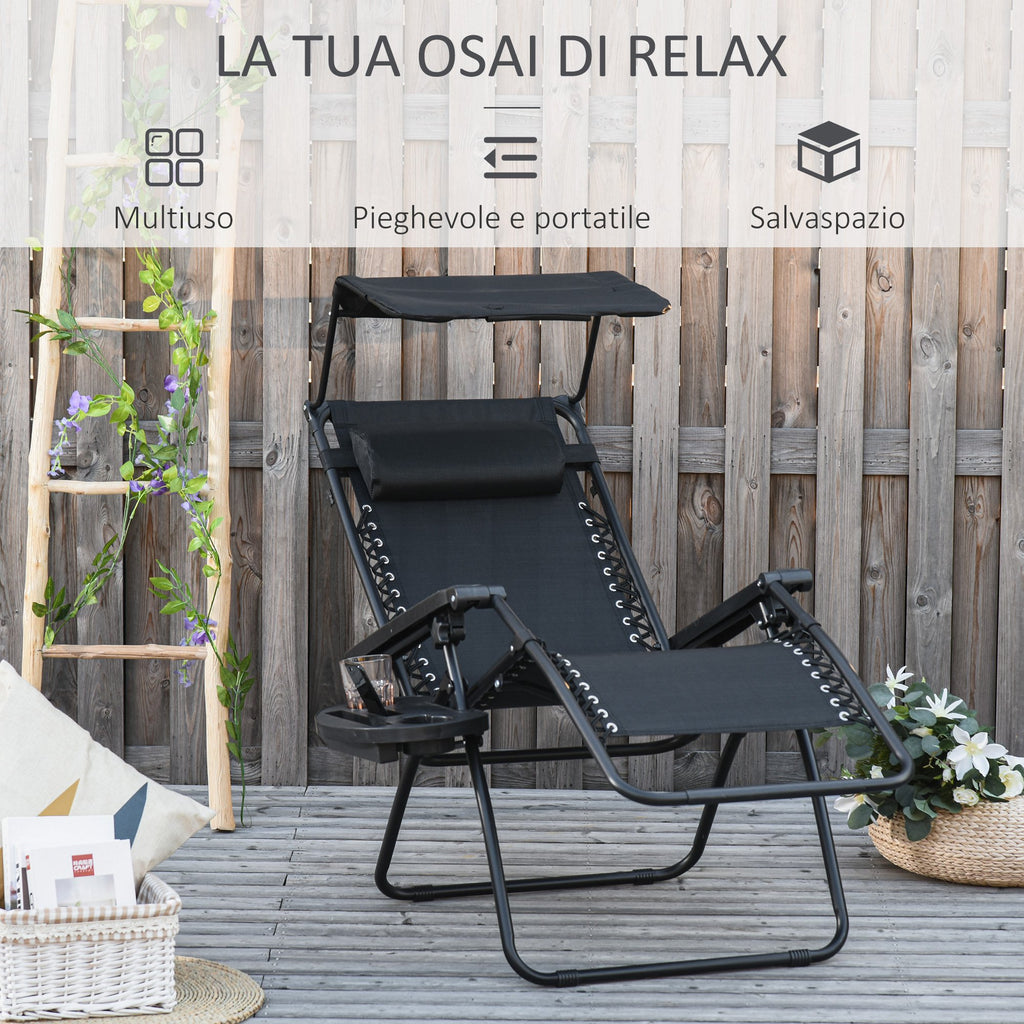 Chaise longue Zero Gravity 90x67x110 cm avec auvent et porte-gobelet Noir