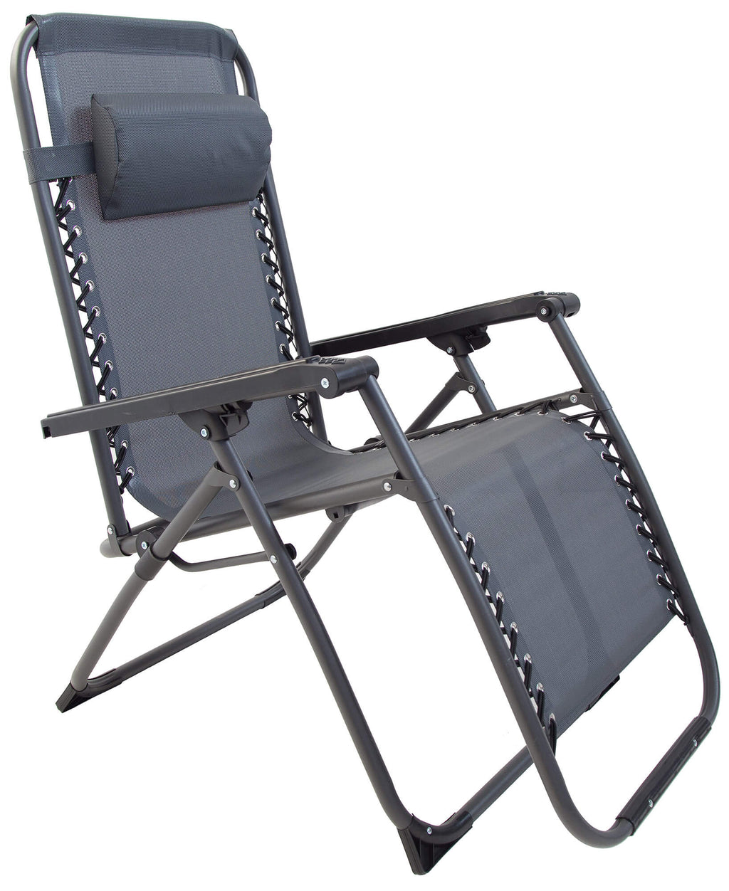 Chaise longue pliante inclinable Zero Gravity 188x65x110 cm en acier et textilène gris
