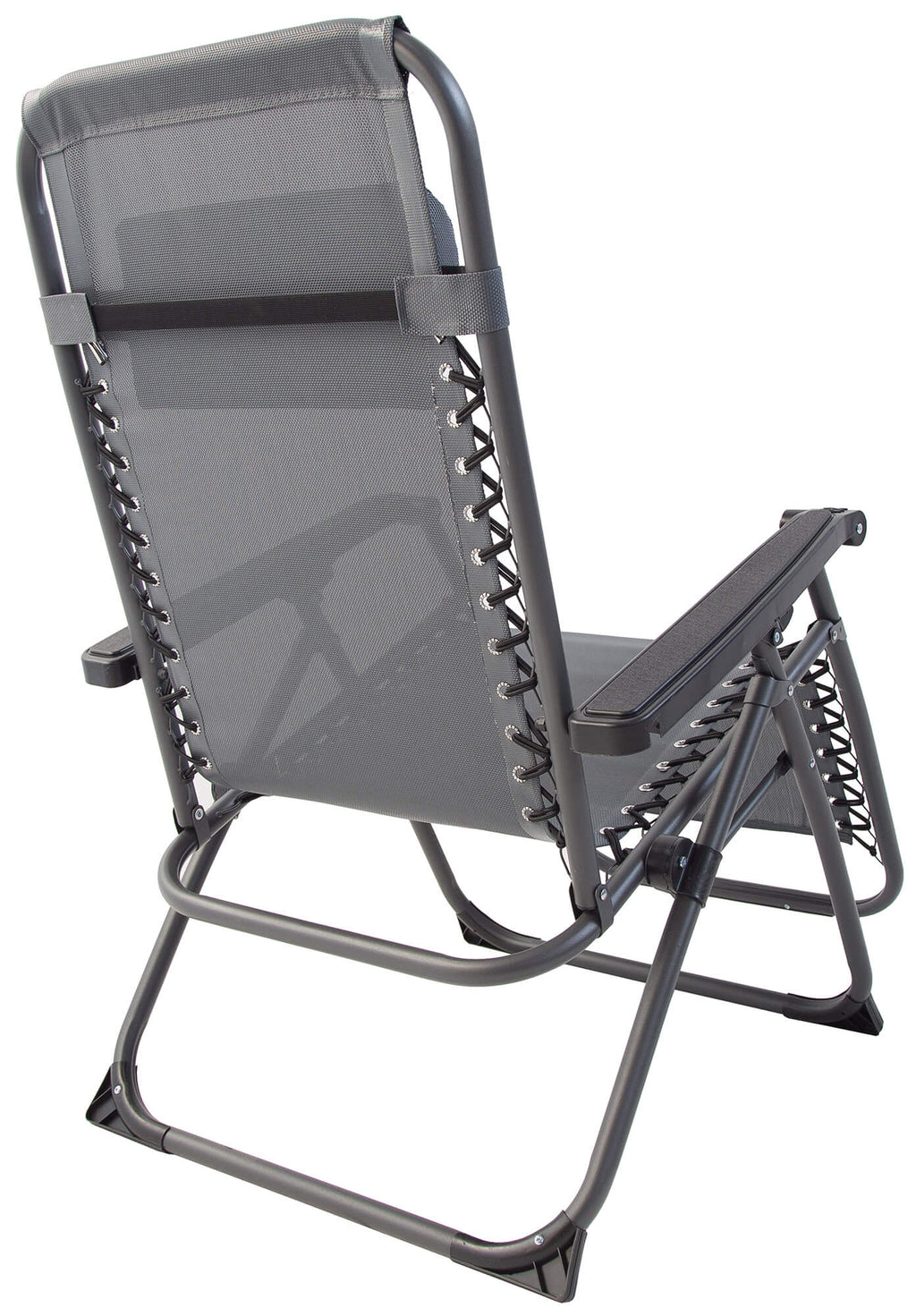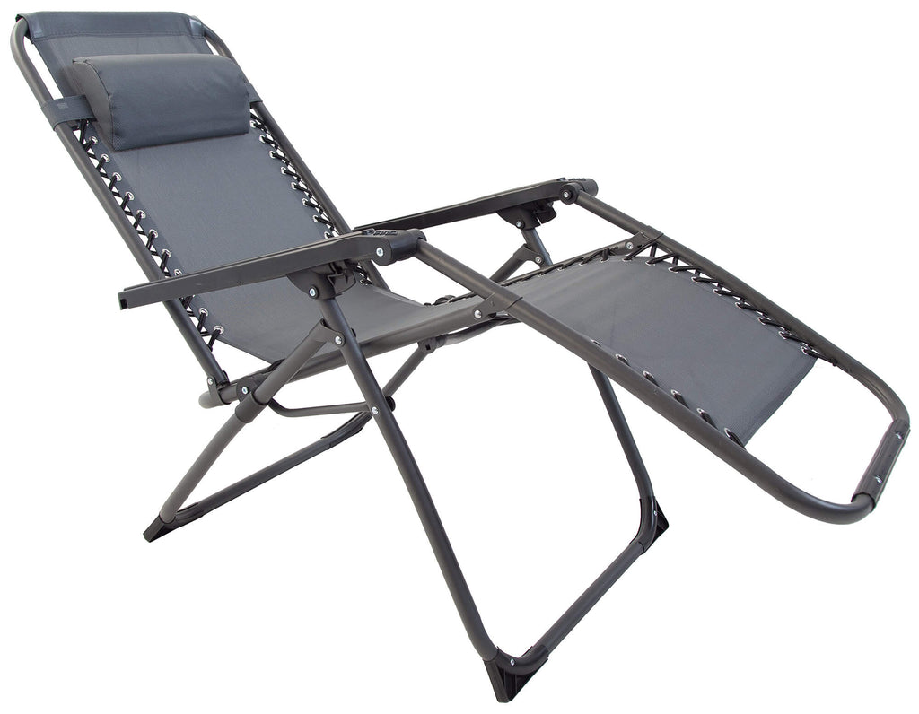 Transat pliant inclinable Zero Gravity 188x65x110 cm en acier et textilène gris