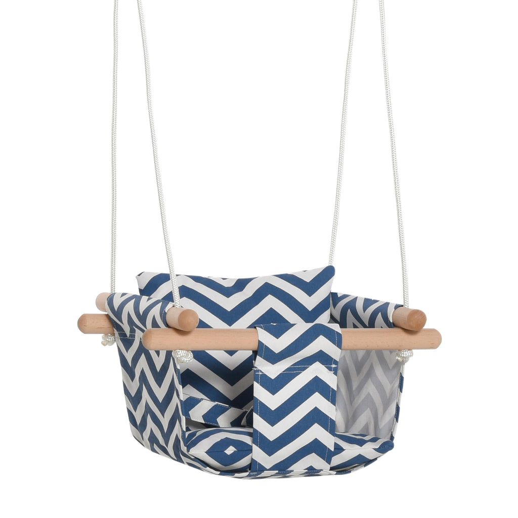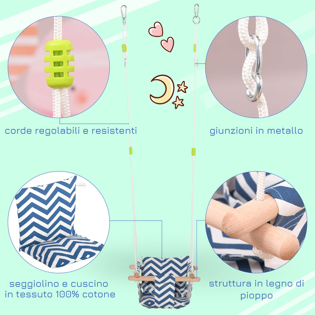 Balançoire pour enfant 40x40 cm en bois et tissu coton bleu et blanc