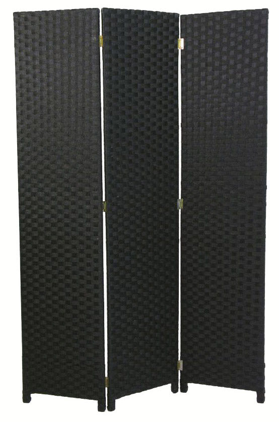 Paravent Séparé en Papier Polyester 4 Portes Noires.