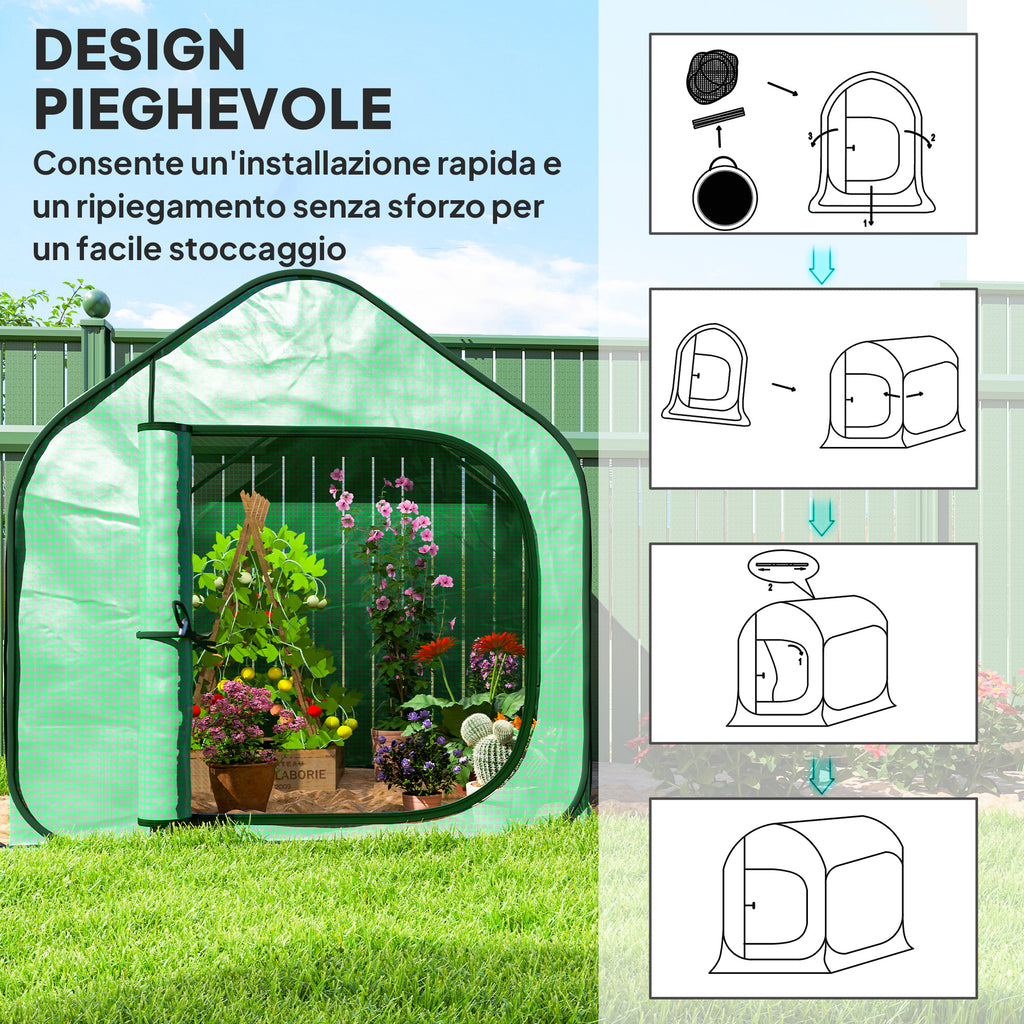 Serra a Casetta Pieghevole 150x148x148 cm con Ingresso a Cerniera Verde