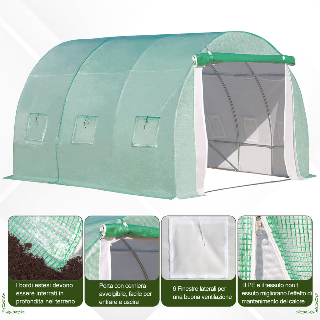 Serre tunnel de jardin 300x300x200 cm en acier et PE vert