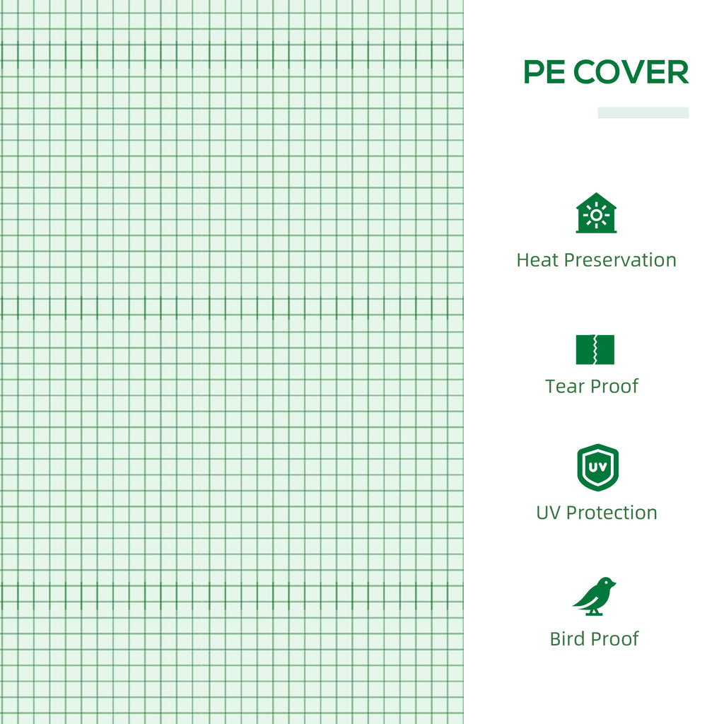 - RIVESTIMENTO IN PLASTICA PE: Resistente alla pioggia e ai raggi UV, la copertura della serra a casetta protegge le tue piante dalle intemperie e assicura il passaggio della luce solare. I bordi estesi di 10 cm devono essere interrati per dare una maggiore stabilità alla serra