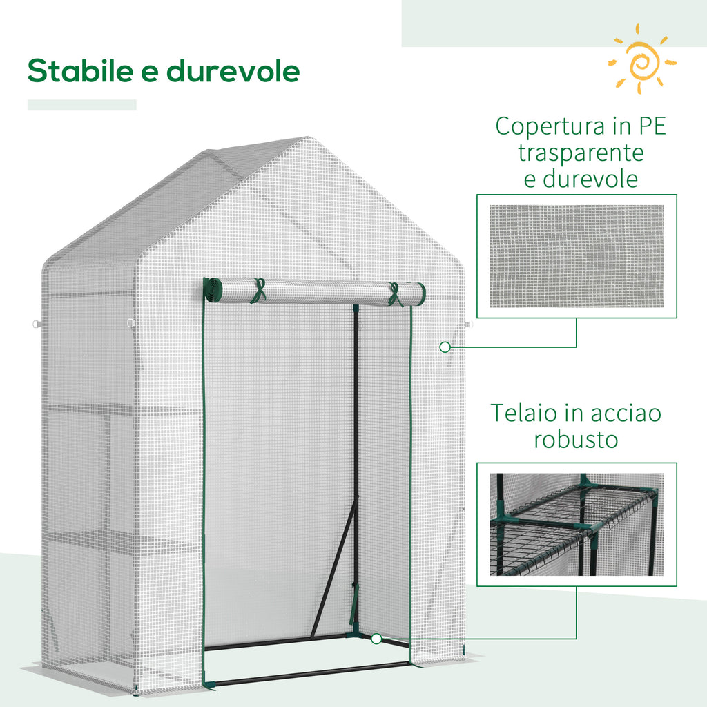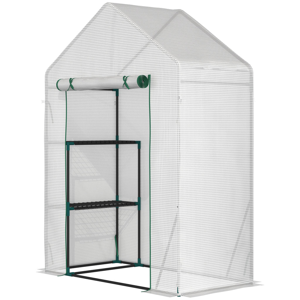 Serre 143x73x195 cm 2 Etagères Porte Enroulable Blanc
