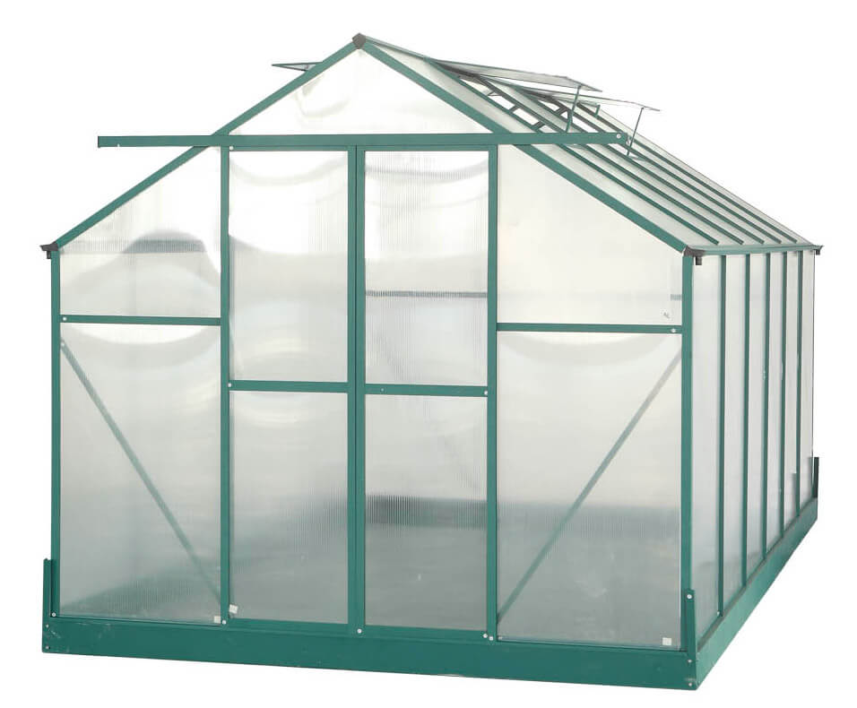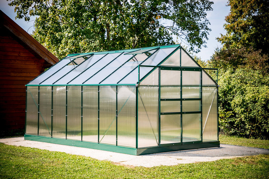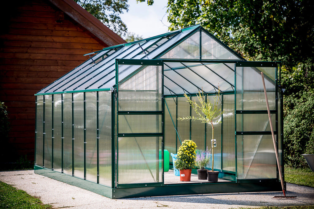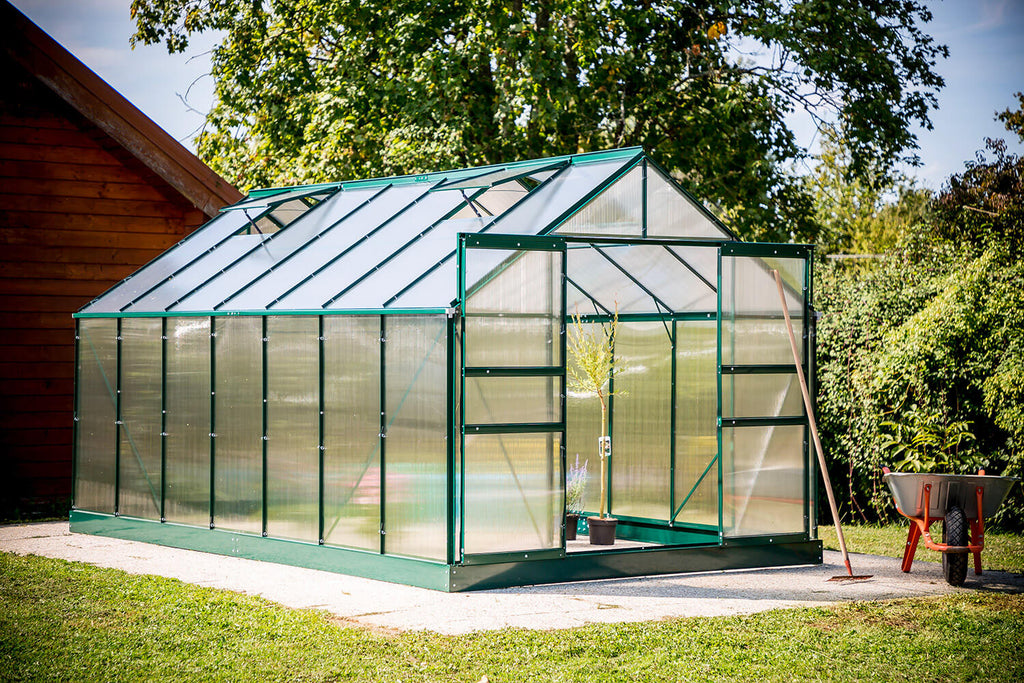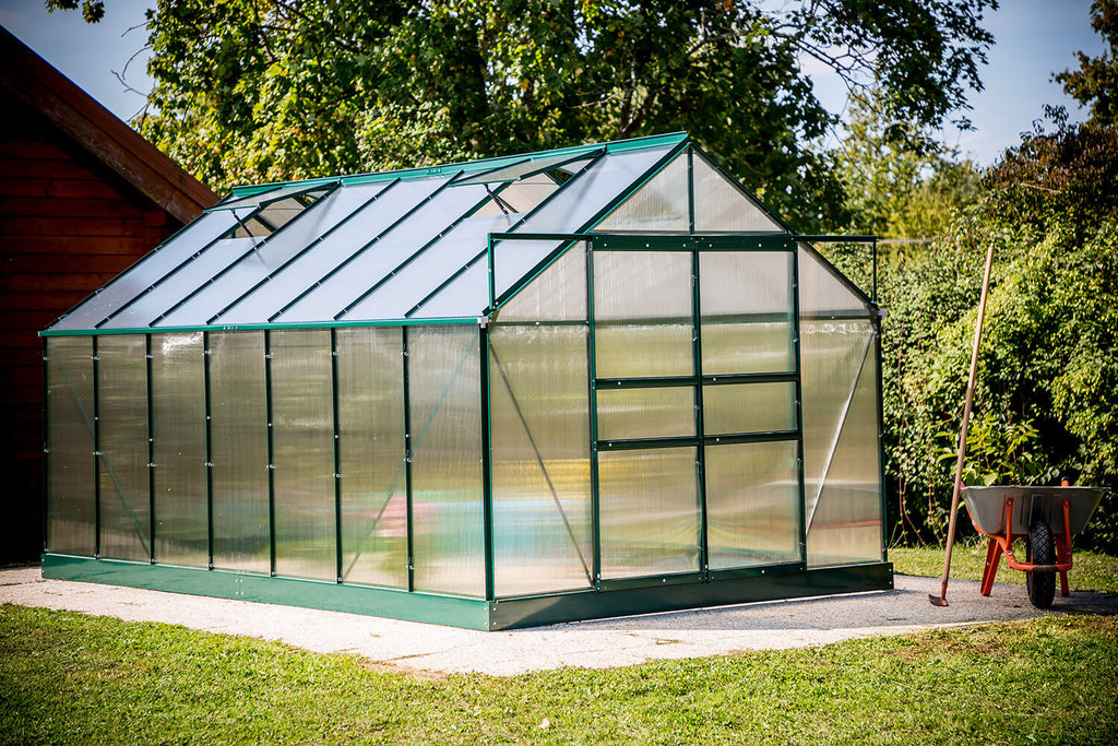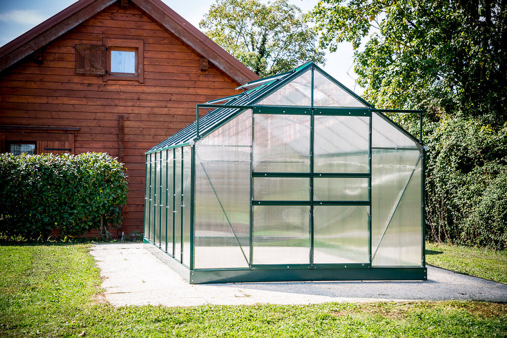 Serre de jardin 2,42x4,27 m en aluminium et polycarbonate nid d'abeille 6mm vert