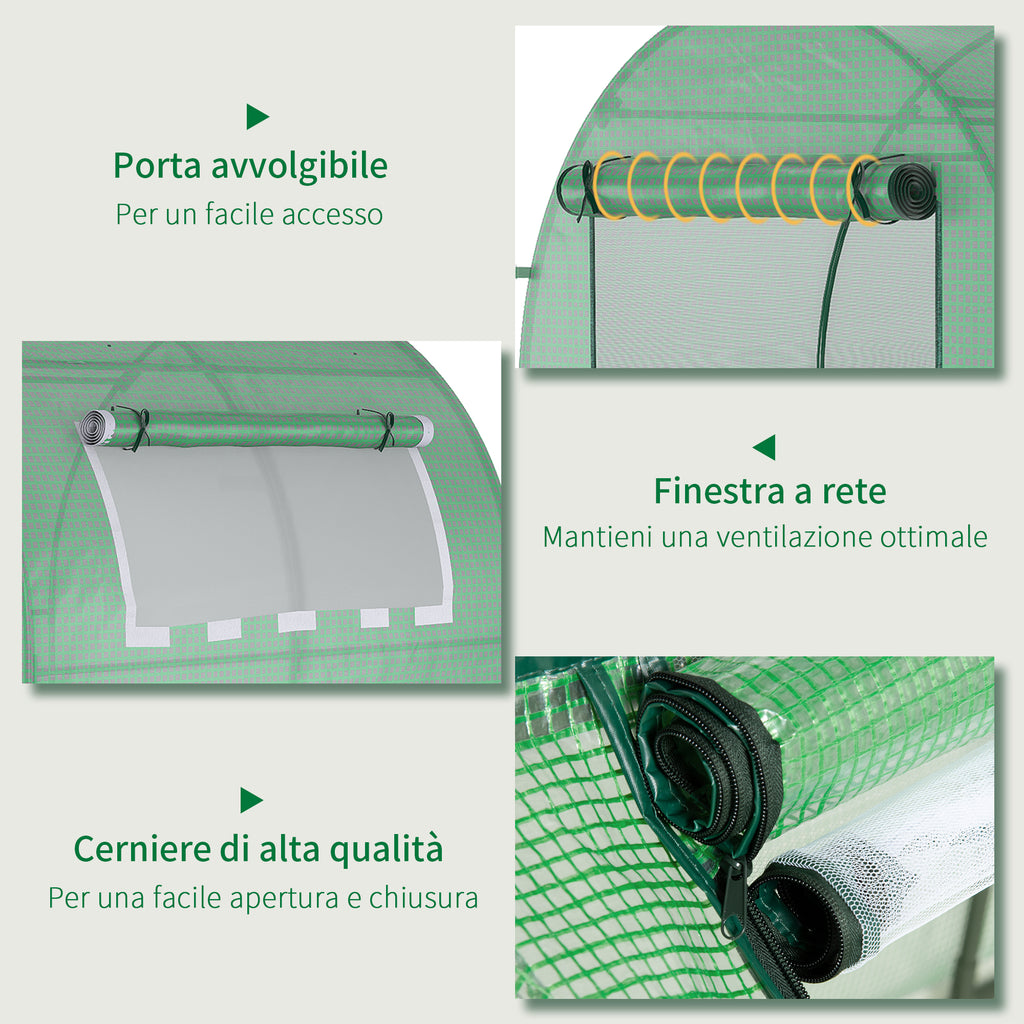 Serra da Giardino a Tunnel 180x180x200 cm con Porte e Finestre Avvolgibili in PE Verde