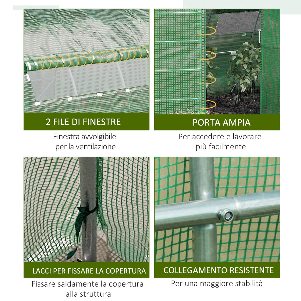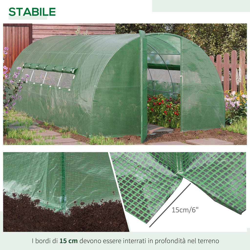 Serre Tunnel 570x292x197 cm pour Potager en Acier et Couverture Verte