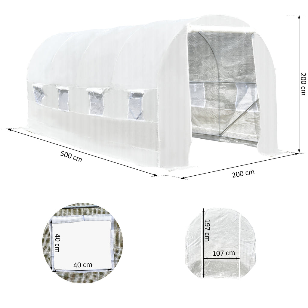 Serre de jardin tunnel pour culture de plantes en PE 5x2x2 m