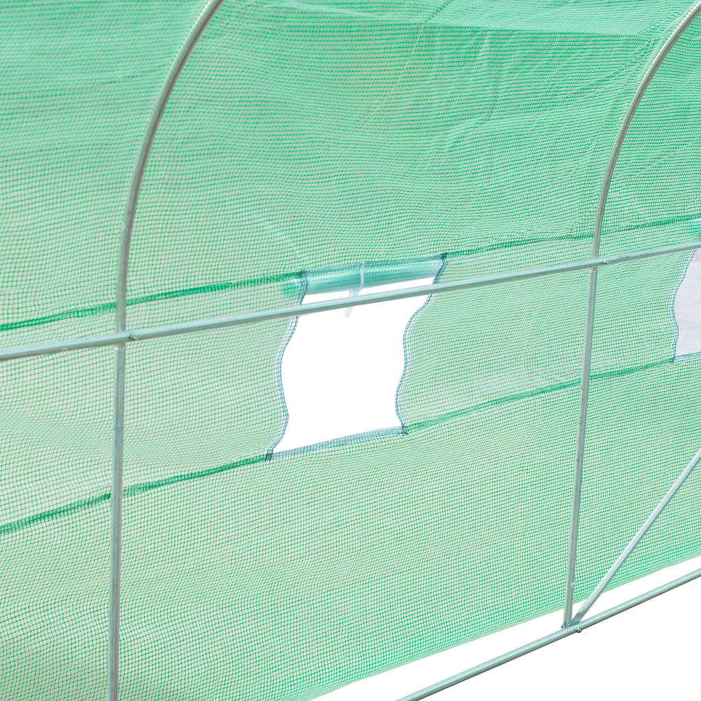 Serre de jardin avec toit incliné en PE et tuyaux en acier vert foncé 4,5x3x2m