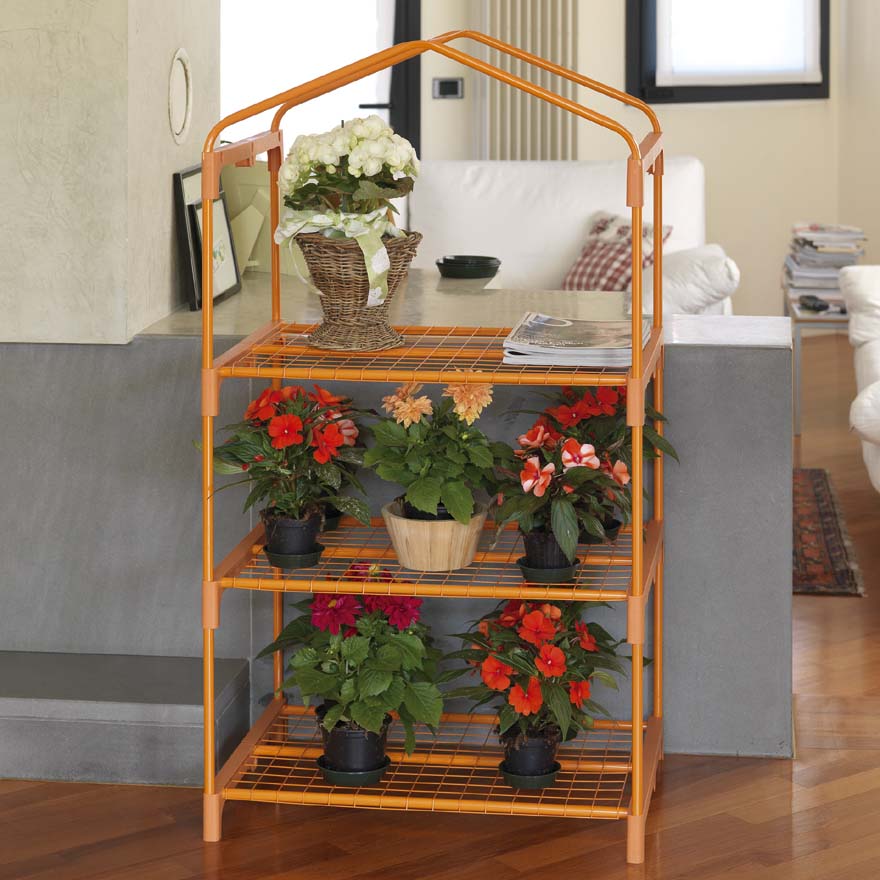 La serre azalée orange 3 étagères possède une structure porteuse et des étagères en acier peint. La bâche résistante aux UV et sans bâche peut être utilisée comme jardinière extérieure.