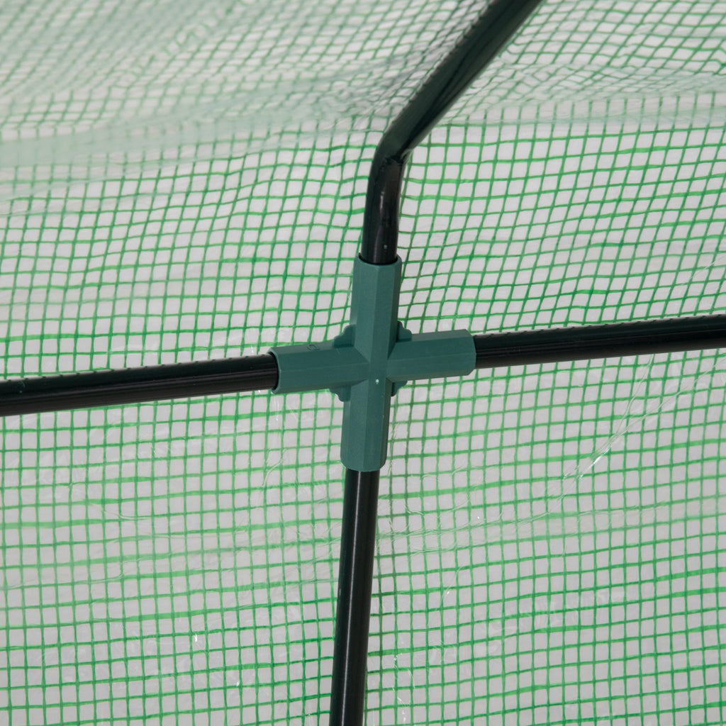 - COUVERTURE PE ET PVC : Serre équipée de 2 couvertures, une en PE et une en PVC, pouvant être utilisées séparément ou ensemble. Le tissu en maille PE assure la perméabilité et protège vos plantes. Les bords excédentaires de la toiture doivent être enterrés pour offrir une plus grande stabilité à la structure. Il est également nécessaire de resserrer le couvercle pour éviter l'accumulation d'eau.
