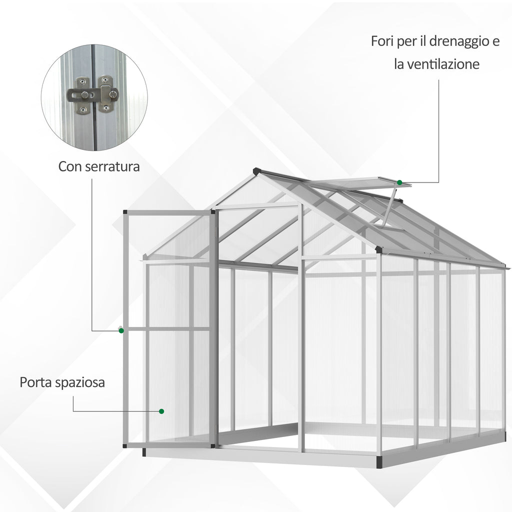 Serre de jardin pour plantes avec toit ouvrant et porte coulissante transparente 242x190x195 cm