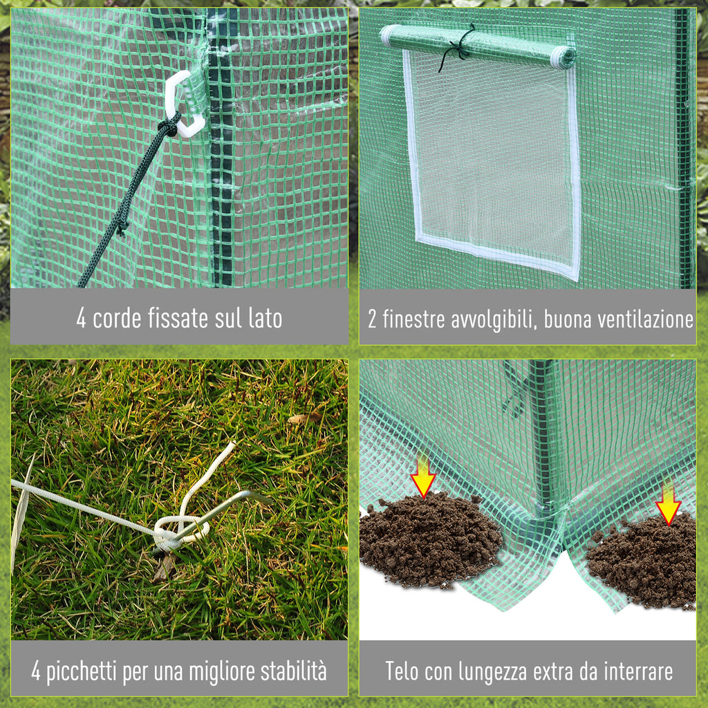 Serre de jardin stable en PE avec structure en acier, rapide et facile à installer.