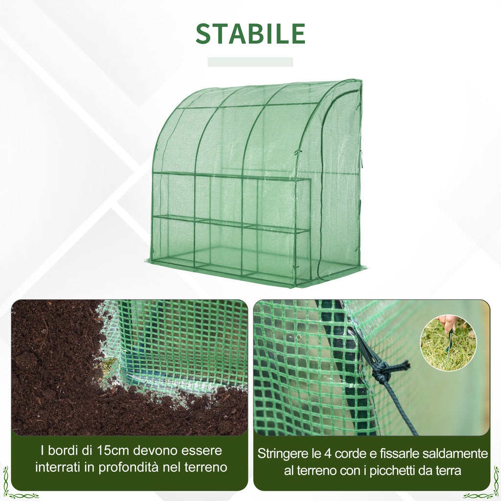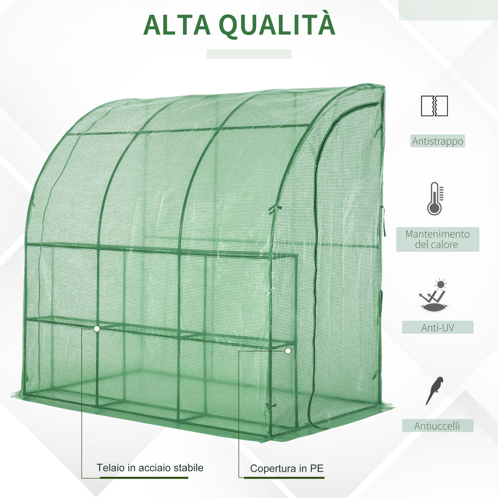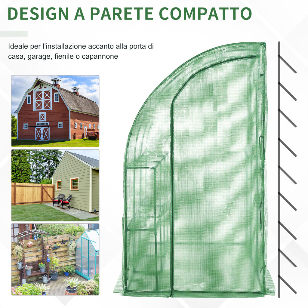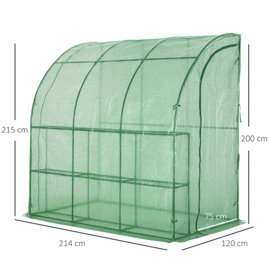 Serre Murale 2 Etagères 214x120x215 cm en Acier et PE Vert