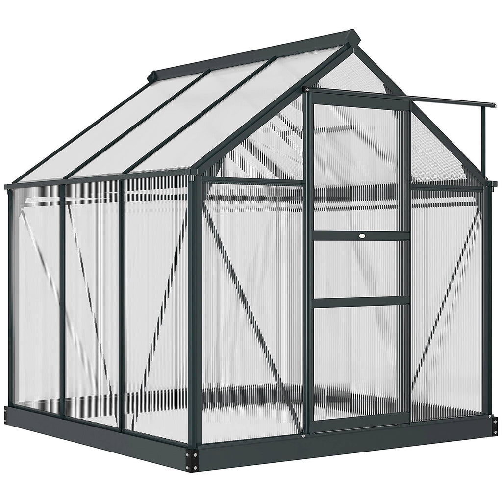 Serra in Policarbonato e Alluminio con Porta Scorrevole 1,9x1,9x2m Presa d'Aria e Grondaia Grigio