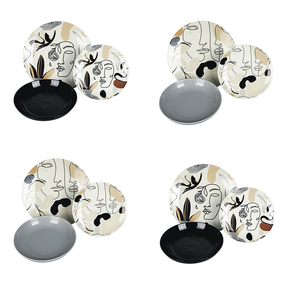VdE Tivoli 1996 Service de table en porcelaine face à gris 12 pièces