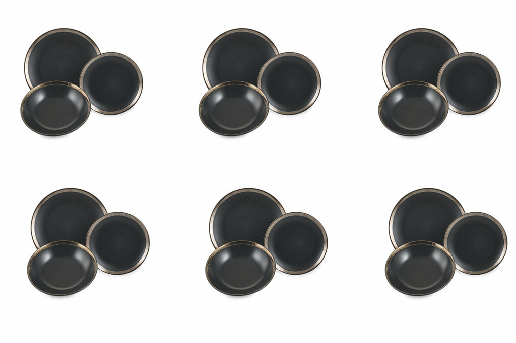 - Le service est composé de 6 assiettes plates, 6 assiettes creuses, 6 assiettes de fruits