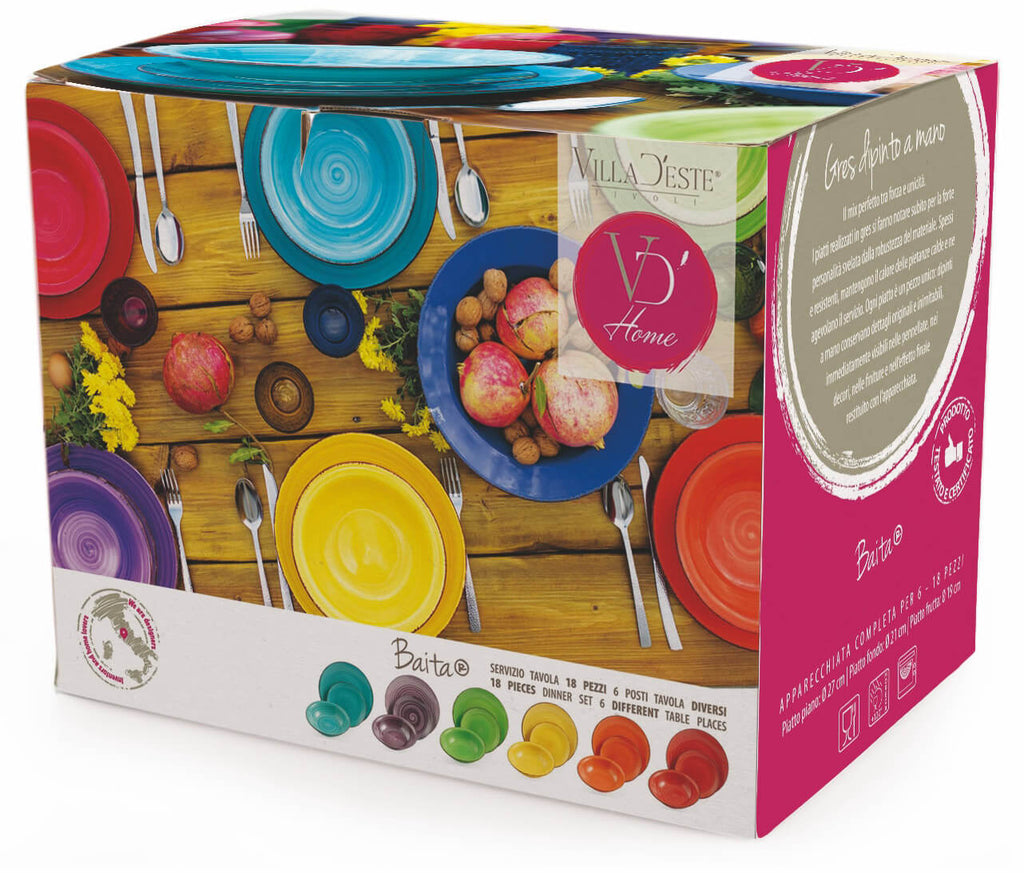 Caractéristiques Service de Table 18 Pièces en Grès VdE Tivoli 1996 1996 Baita Multicolore