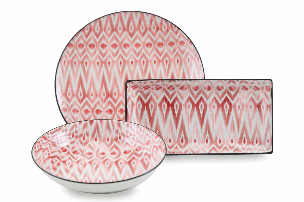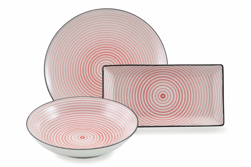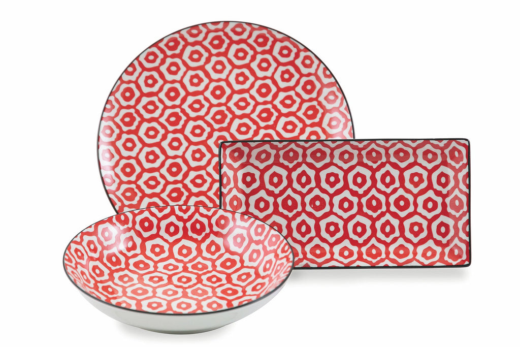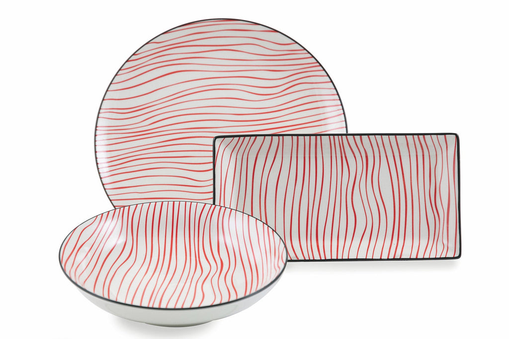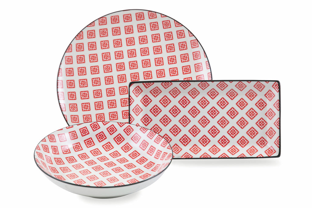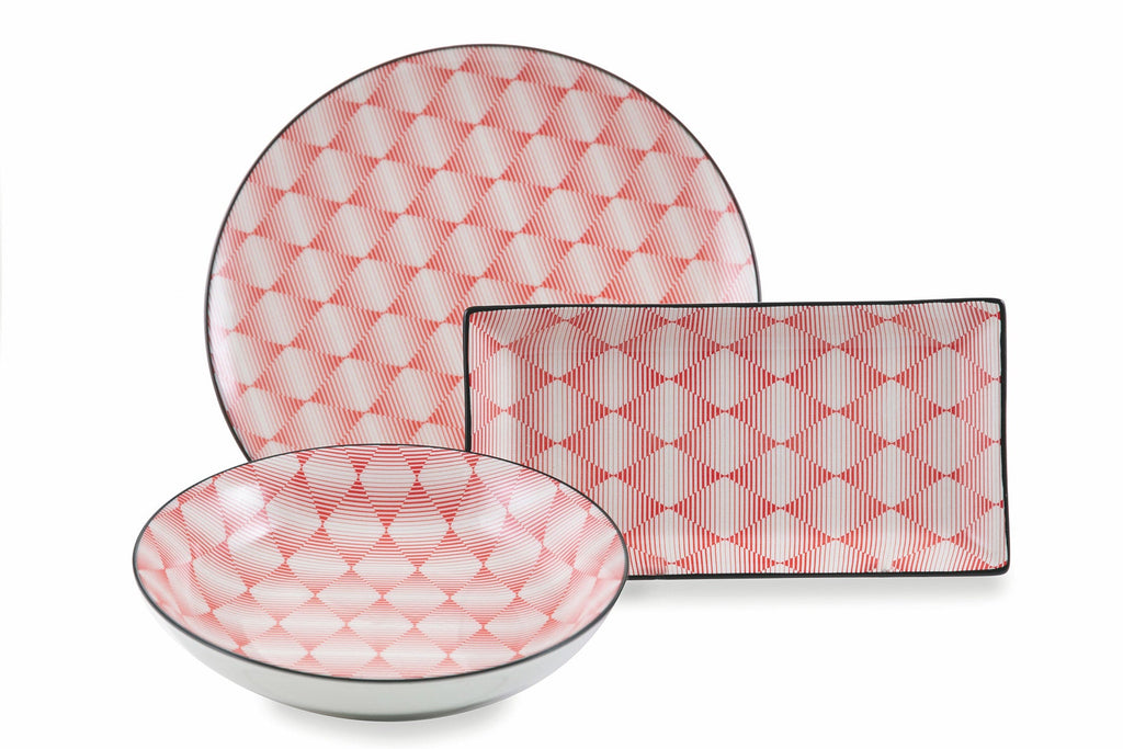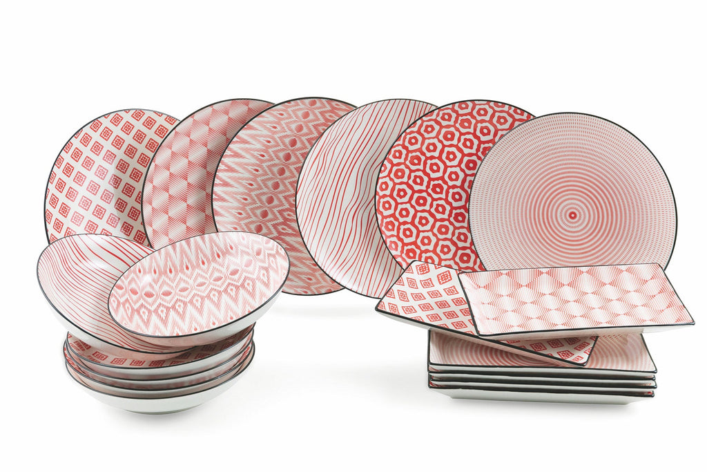 Service de table 18 pièces en grès rouge et blanc Confusion VdE Tivoli 1996
