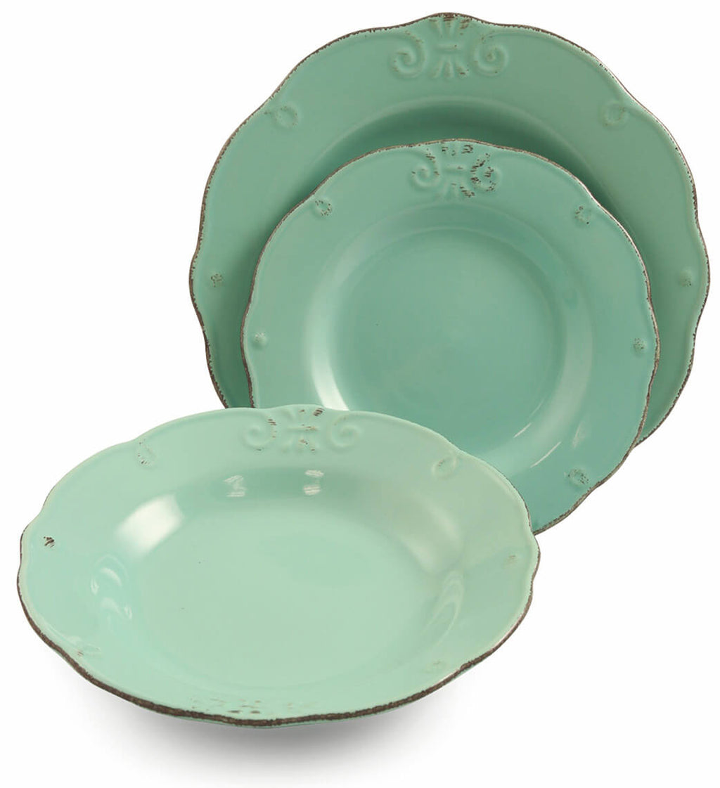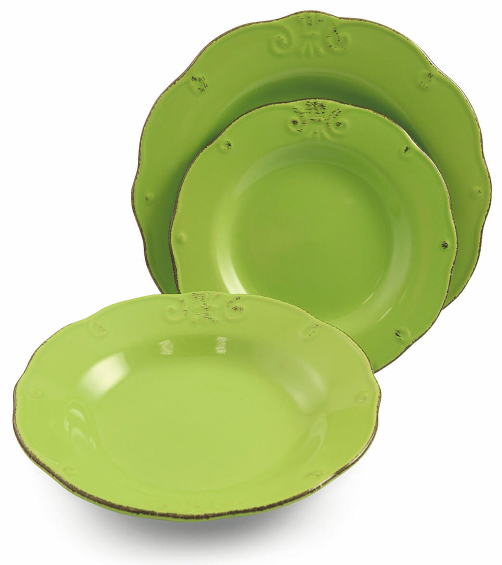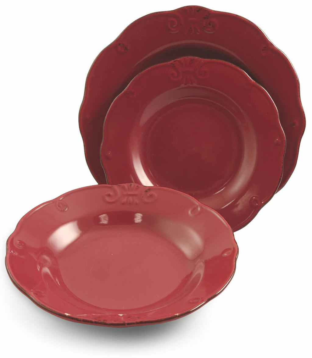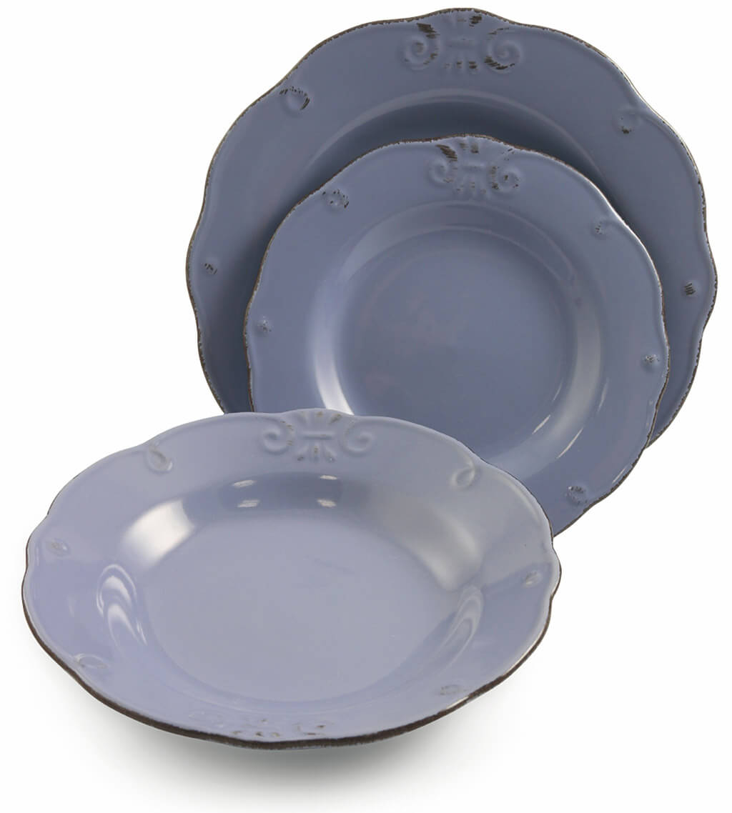 - Le service est composé de 6 assiettes plates, 6 assiettes creuses, 6 assiettes de fruits.