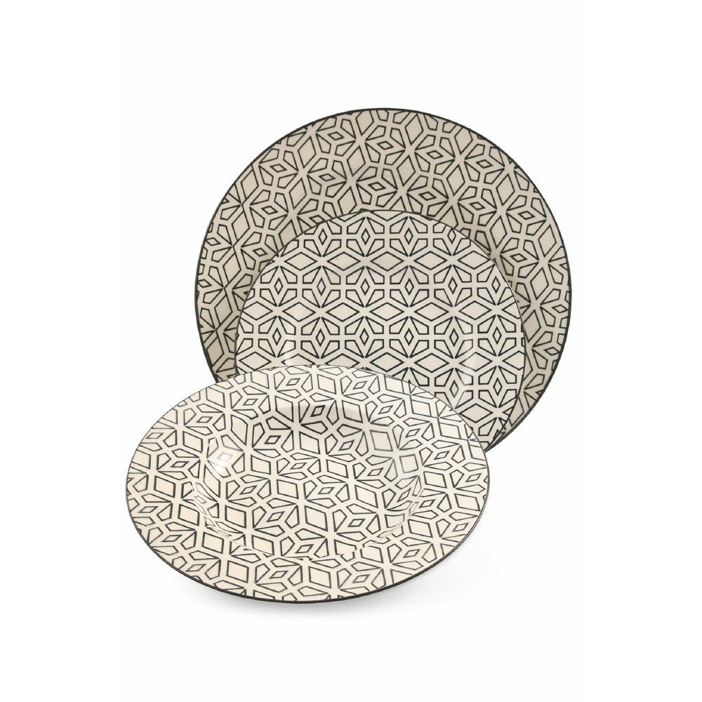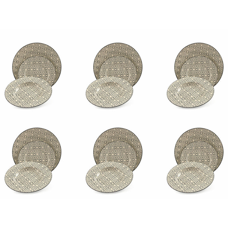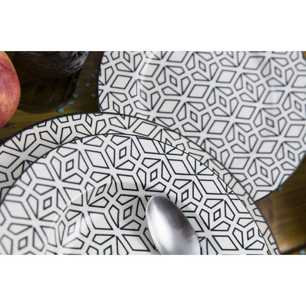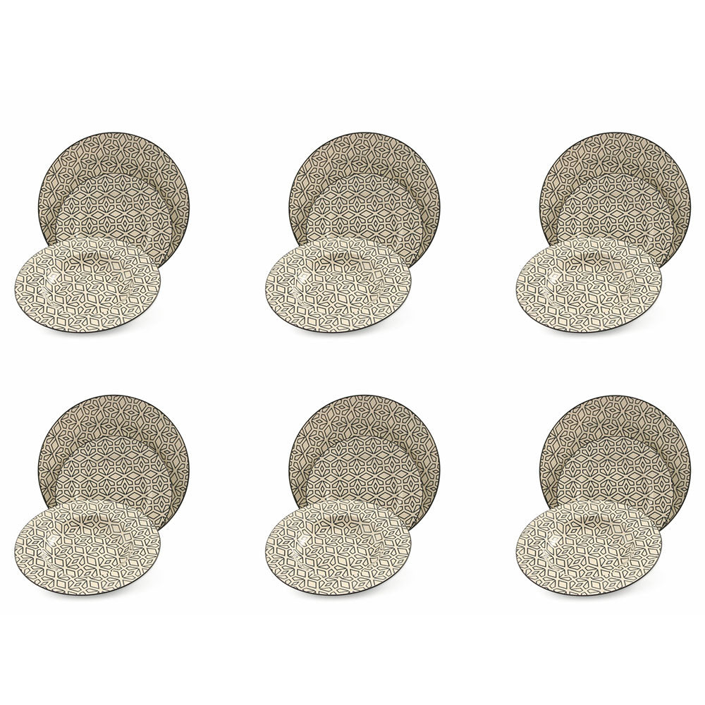 - Le service se compose de 6 assiettes plates, 6 assiettes creuses, 6 assiettes à fruits.