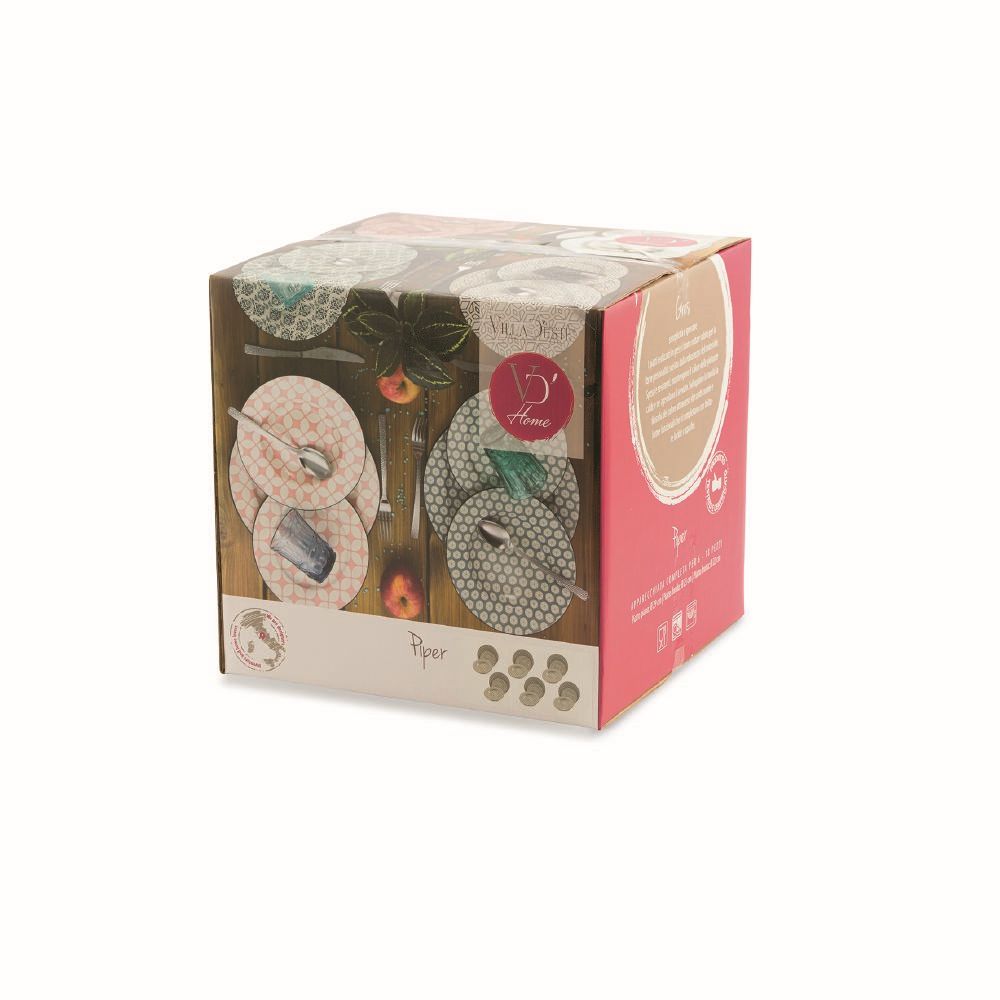Psychédéliques et rétro, les motifs optiques du service Piper nous entraînent dans le rythme d'une époque innovante et anticonformiste. Elles sont florales, arabesques et géométriques : elles s'intègrent dans un environnement au design épuré, redécouvrent de nouvelles matières, clin d'œil aux tissus et papiers peints exclusifs. Les couleurs deviennent fortement identitaires, s'entremêlant parfois avec des accents glamour.
