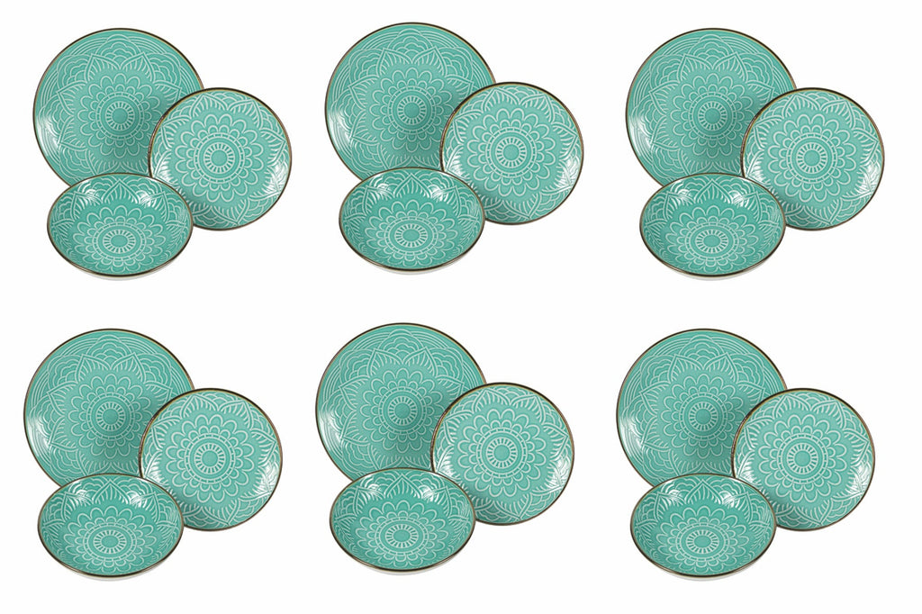 - Le service est composé de 6 assiettes plates, 6 assiettes creuses, 6 assiettes de fruits