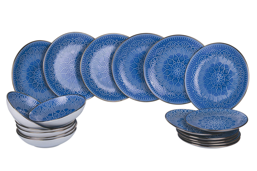- Le service est composé de 6 assiettes plates, 6 assiettes creuses, 6 assiettes de fruits