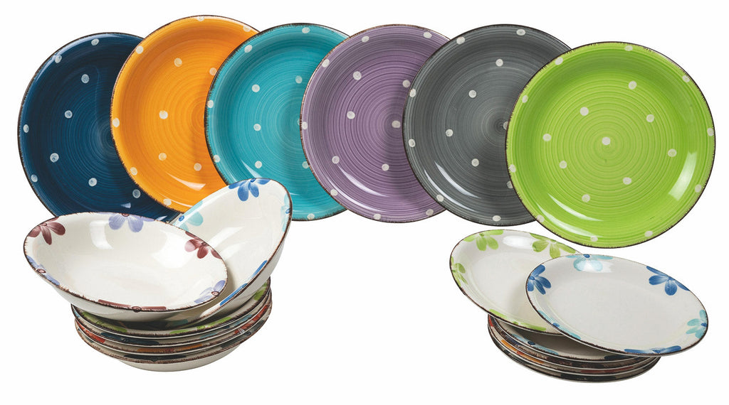 Grès peint à la main : solidité et singularité Les assiettes en grès se distinguent d'emblée par leur forte personnalité révélée par la robustesse du matériau. Épais et résistants, ils maintiennent la chaleur des plats chauds et facilitent leur service. Chaque assiette est une pièce unique : peintes à la main, elles conservent des détails originaux et inimitables, immédiatement visibles dans les coups de pinceau, les décorations, les finitions et dans l'effet final rendu avec le décor. Décomposé à table Chaque service est composé de 6 places de table, chacune avec un décor ou une couleur différente des autres plats du même service. Ceux qui choisissent les Scomposti auront une table non conventionnelle et différente, multicolore, avec une alternance de motifs et de couleurs. Nous attribuons une couleur différente à chaque convive assis autour d'une table.