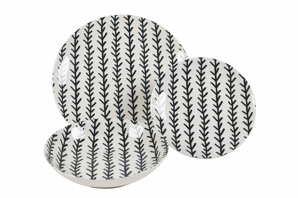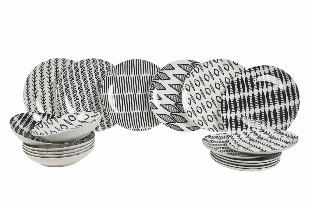 - Le service est composé de 6 assiettes plates, 6 assiettes creuses, 6 assiettes de fruits.