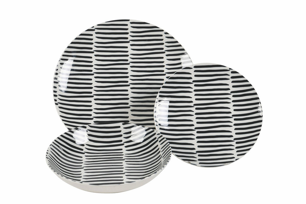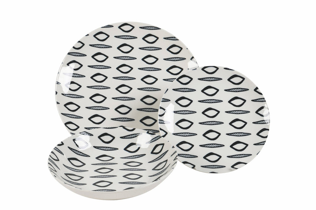 L'archipel de Zanzibar est l'un des plus beaux paradis terrestres du monde, une destination au charme intemporel : imaginez un paysage d'eaux turquoise se brisant sur des plages d'un blanc très blanc, une brise marine soufflant à travers les palmes et à l'horizon un coucher de soleil aux mille milles. nuances pastel. Avec la ligne Zanzibar vous apporterez un peu de ce rêve exotique à votre table : les décors stylisés font clairement référence à la culture tribale africaine, tandis que la matière des assiettes, en porcelaine émaillée, met en valeur les couleurs monochromes, noir et blanc. Les décompositions donnent à la mise en place originalité et diversité. Zanzibar est la ligne parfaite pour ceux qui : sont fascinés par les monochromes, veulent donner à leur table un goût tropical et exotique Ce qui ne doit jamais manquer : des plateaux assortis pour servir des fruits exotiques comme l'ananas, l'avocat, la mangue pour enrichir vos plats et créez de délicieux contrastes aigre-doux, des bols d'épices.