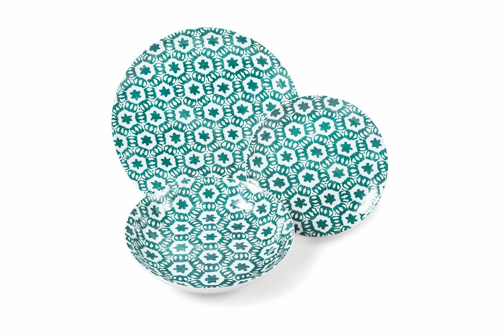- Le service est composé de 6 assiettes plates, 6 assiettes creuses, 6 assiettes de fruits