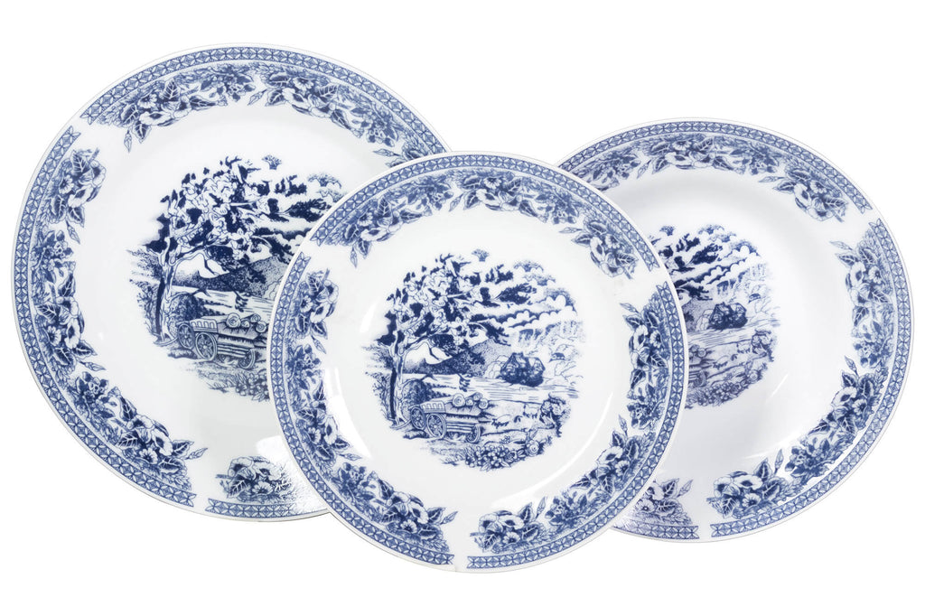 Service de table en porcelaine 18 pièces avec décorations de la collection Old England blanc/bleu