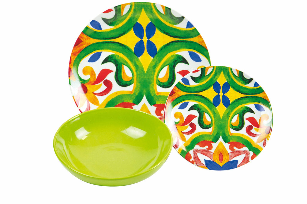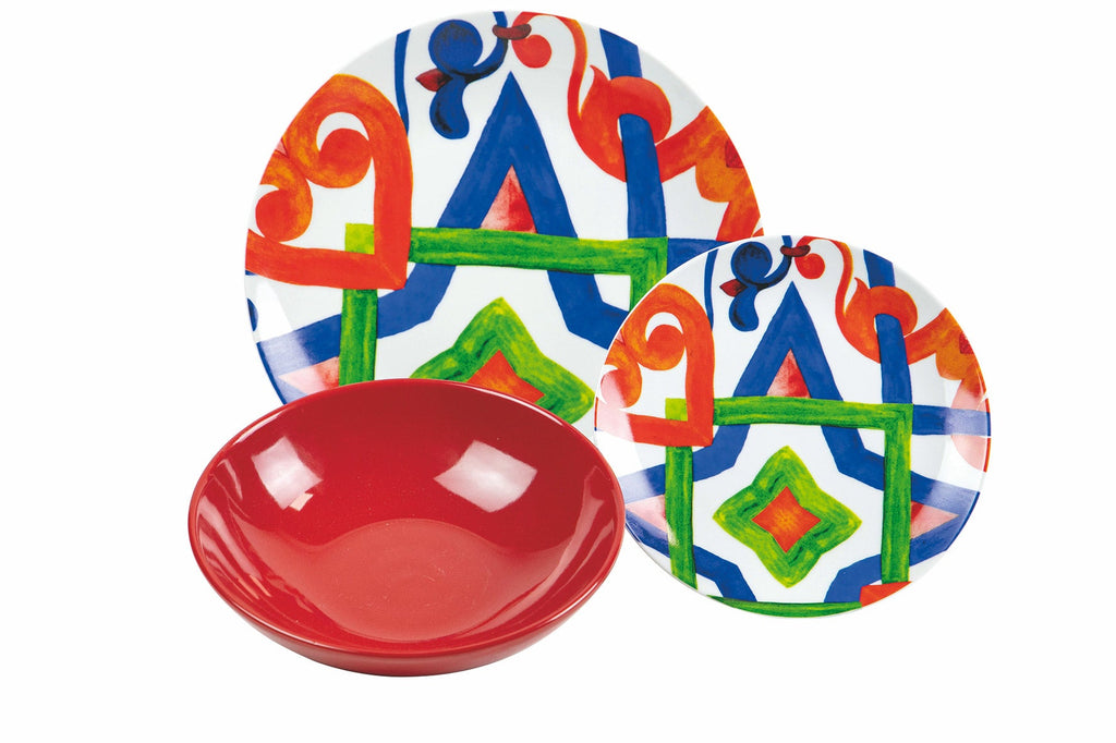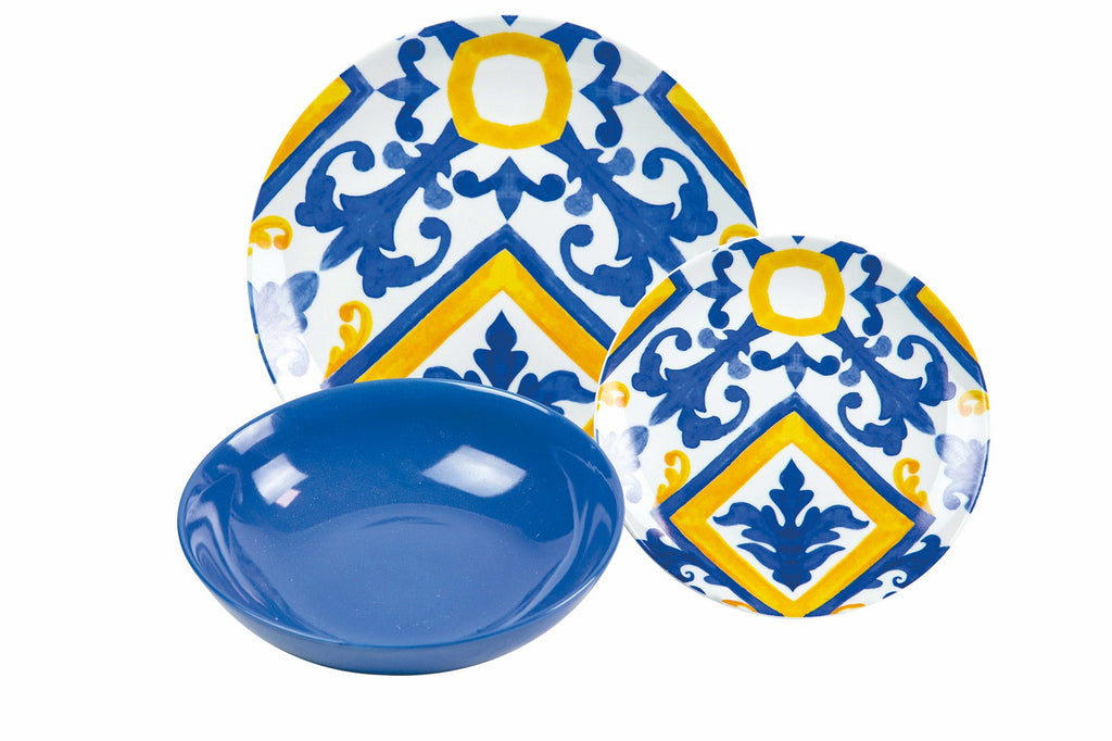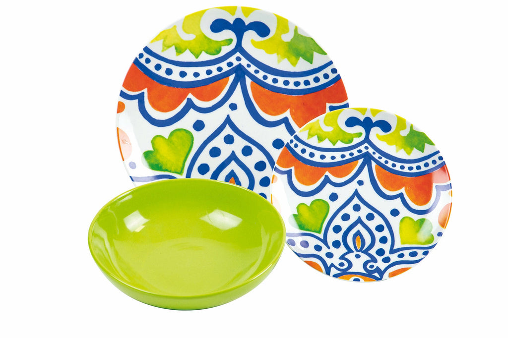 - Le service est composé de 6 assiettes plates, 6 assiettes creuses, 6 assiettes de fruits.